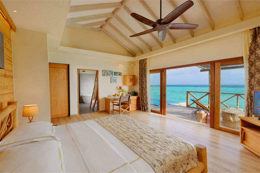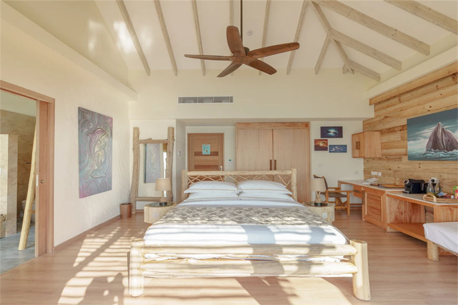 房型介绍:岛上最大的套房,280㎡的面积,全岛仅1间,可观赏日落美景。设有一间超大卧室,一间带双人浴缸的浴室,一间带有电视的起居室,厨房,带私人健身房的娱乐室,电影院和按摩床,一个私人泳池。在这里,你能拥有你想要的一切,它会让你拥有一个难忘的独特、浪漫马代之旅。