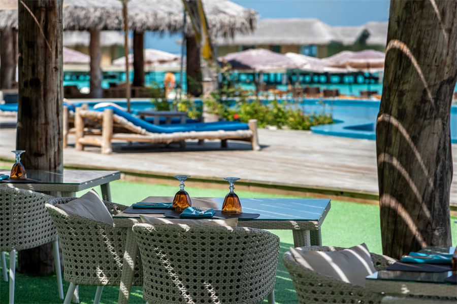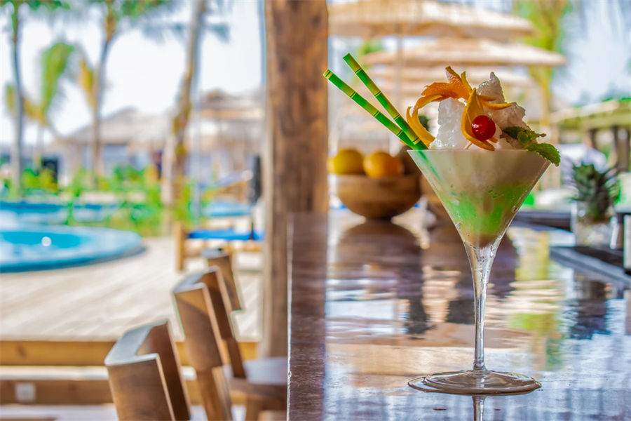 餐厅介绍:室外酒吧氛围休闲放松,摄人心魄的印度洋日落美景可一览无余。这里配备超大藤椅和长沙发,您可在此与亲朋好友惬意小聚,品尝鸡尾酒和小吃。