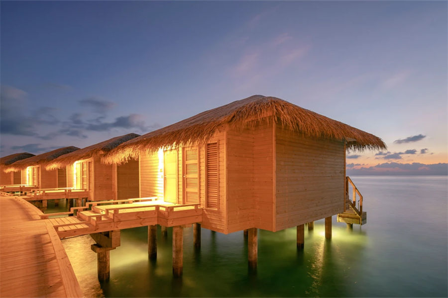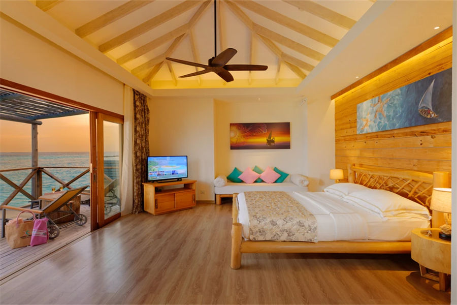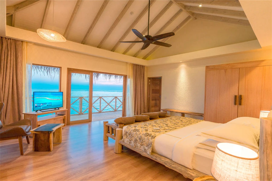 房型介绍:置身于泄湖水上套房,您可欣赏无与伦比的日落美景。房间设有抛光木质地板,可远眺大海的超大床,舒适的沙发,花洒淋浴以及可饱览泻湖无限景致的海滨露台。