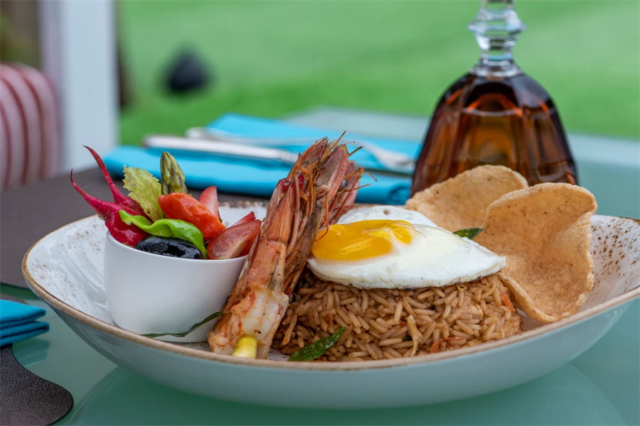 餐厅介绍:一个环绕在泳池周围的餐厅,你可在充满乐趣、拥有都市时尚的氛围中享用午餐和下午茶,这里的餐食健康而又美味,推荐每日例汤和海鲜炒饭,尤其是炒饭,很符合亚洲人的口味!