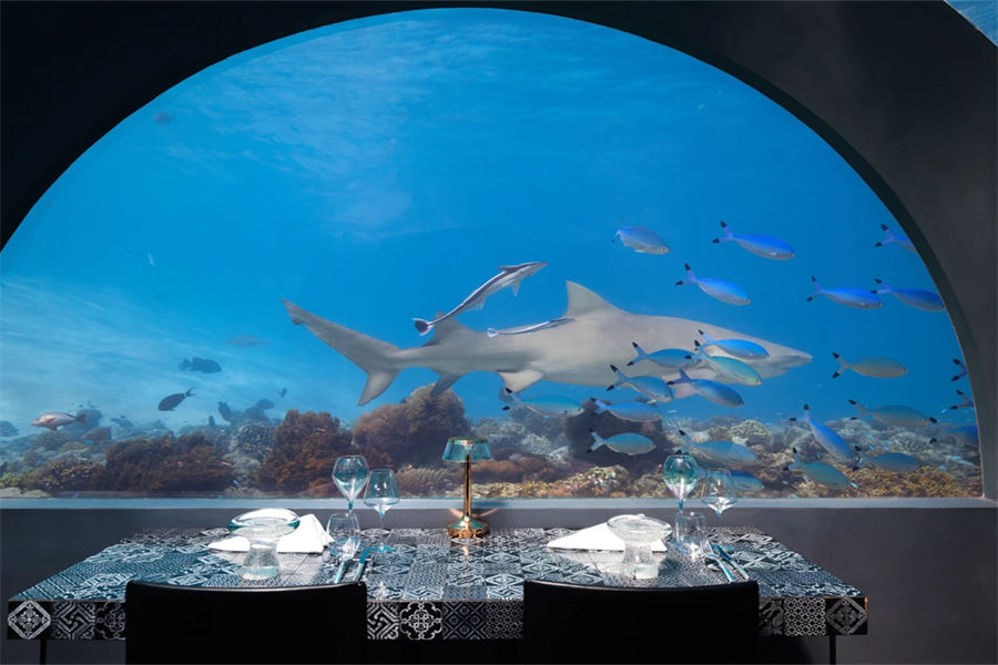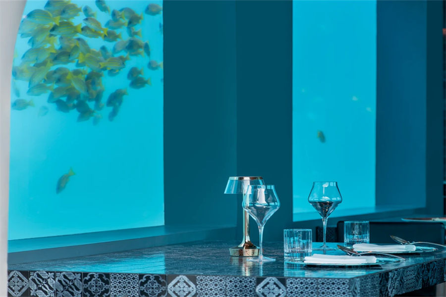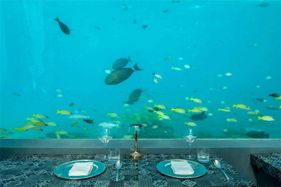餐厅介绍:H2O水下餐厅是酒店最具特色的一个完全浸没在水下的餐厅,须搭船前往,在享受美味佳看的同时,还可360度全方位欣赏马代令人惊叹的海洋环境。
