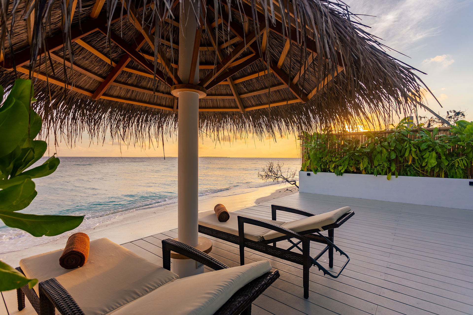 房型介绍:我们的日出海滩泳池别墅位于海岸线沿岸,占地 200 平方米,是相互连接的豪华现代别墅,融合了复古的马尔代夫内饰、私人泳池、所有独立客房内的按摩浴缸和日光浴甲板,同时可欣赏到无可挑剔的耀眼日出景观。