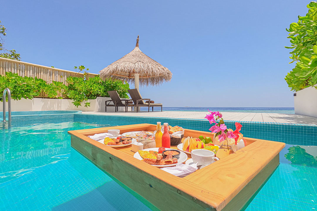 餐厅介绍:坐在水边,在这家现代而美丽的餐厅享用早餐、午餐或晚餐,俯瞰我们美丽的泻湖。如果您喜欢在星空下享用晚餐,请选择坐在我们的露天甲板上,一边聆听海浪拍打的声音一边用餐。如果您更喜欢在海滩上享受私人用餐体验;请联系我们 Maaga 的工作人员,他们将非常乐意为您安排私人用餐体验。Maaga 的自助餐经过精心准备,包含来自世界各地的各种口味,以满足我们多元化的旅客群体的需求。
