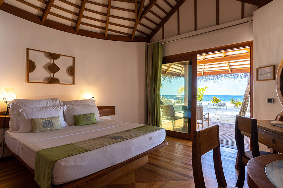 房型介绍:凭借其独特的魅力、海滨景观和只有最私密和舒适的环境才能提供的宁静,Dhiggiri 的 27 间海滩平房将为您提供地道的马尔代夫体验。