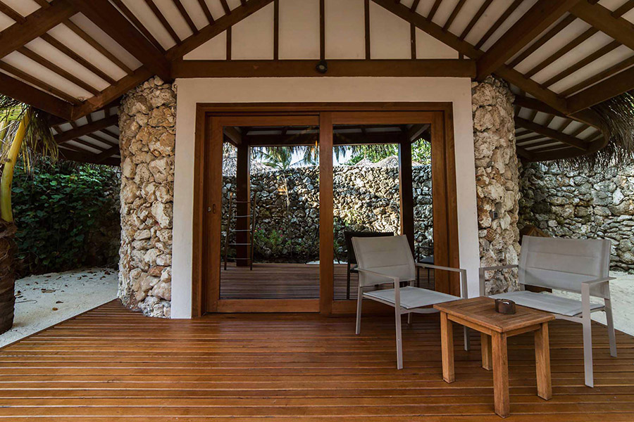 房型介绍:这是独一无二的。这间客房位于岛屿的中心,专为那些渴望最亲密的人设计和建造,周围环绕着一堵真正的珊瑚墙。酒店设有一个宽敞的庭院,俯瞰着一个私人花园,您可以在那里躺在被大自然包围的摇椅上放松身心。