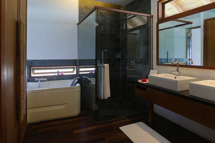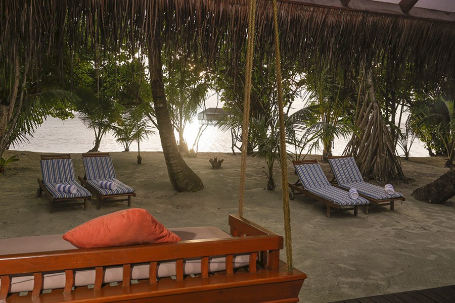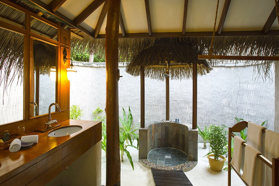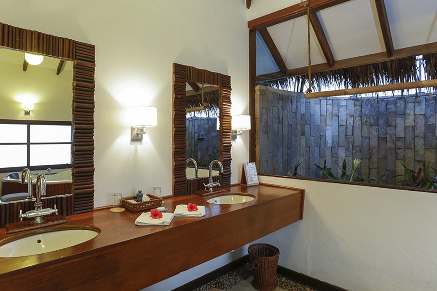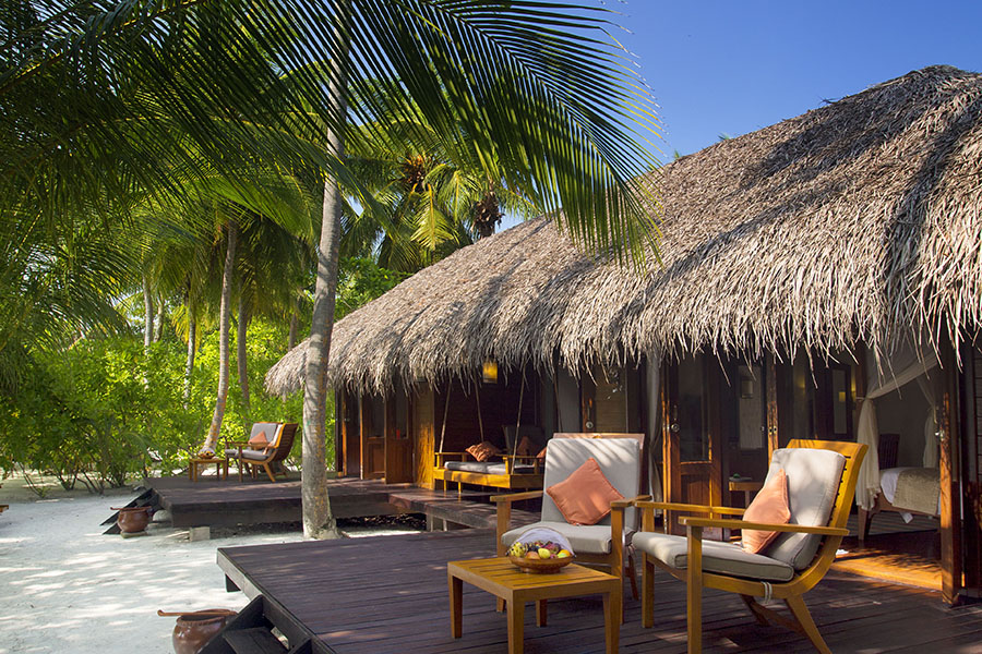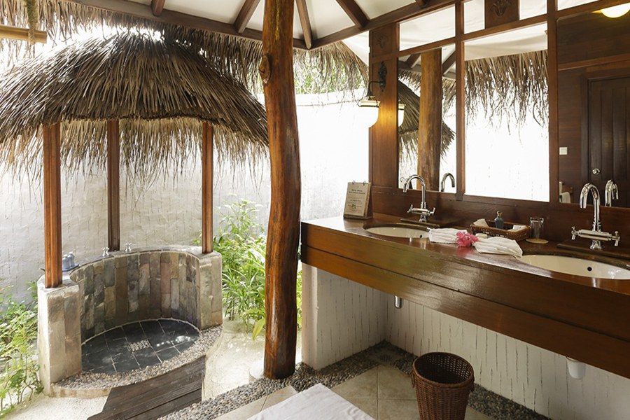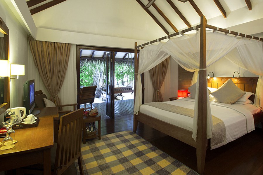 房型介绍:海滩别墅坐落在粉白色的沙滩上,周围环绕着芙蓉和海菜等郁郁葱葱的植被,提供额外的隐私。亮点包括四柱特大号床/两张单人床和室外淋浴间。其中14栋海滩别墅是半独立式的,提供了更多的空间和连接别墅的隔断门。