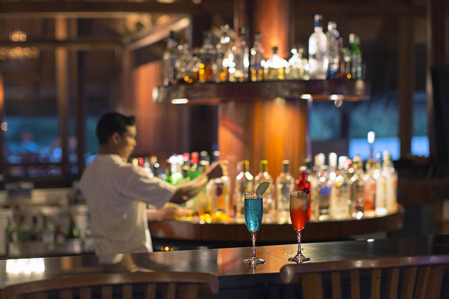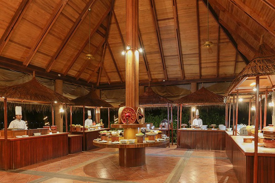 餐厅介绍:在水上金字塔高耸的茅草屋顶下,Vilu Bar酒吧提供各种优质烈酒、鸡尾酒、葡萄酒和啤酒以及小吃菜单。酒店还设有台球、飞镖和图书馆区。螃蟹赛跑和马尔代夫传统的“bodu beru”击鼓等特别活动也在这里举行。