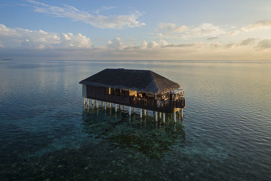 餐厅介绍:这个美丽的场地位于Medhufushi标志性的金字塔形水上凉亭内。微风拂面,椰子茅草遮荫,露天空间白天和黑夜都能欣赏到玻璃泻湖无与伦比的美景,是日落时分浪漫晚餐的理想场所。在这里,您可以享用各种单点特色菜、葡萄酒和其他饮料。