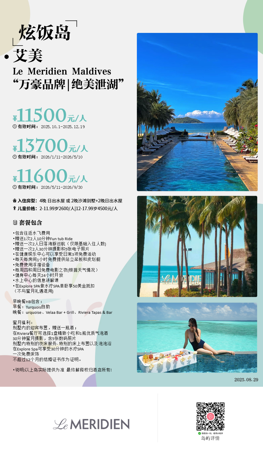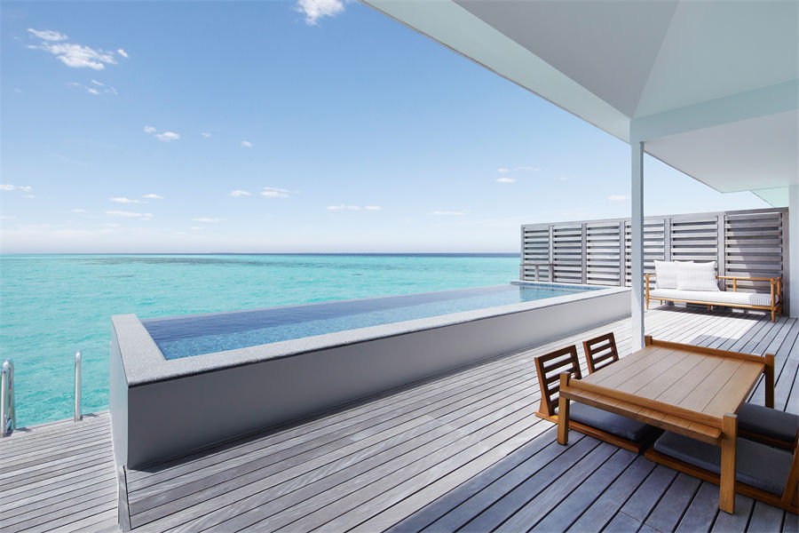 马尔代夫艾美Le Meridien Maldives Resort & Spa,位于拉薇尼亚环礁,从马累出发乘坐水上飞机35分钟即可抵达。万豪集团在马尔代夫开幕的第七家度假村,定位于CAT5级别,甚至可以积分兑换。所以背靠大牌连锁,新岛也不存在磨合和服务问题。