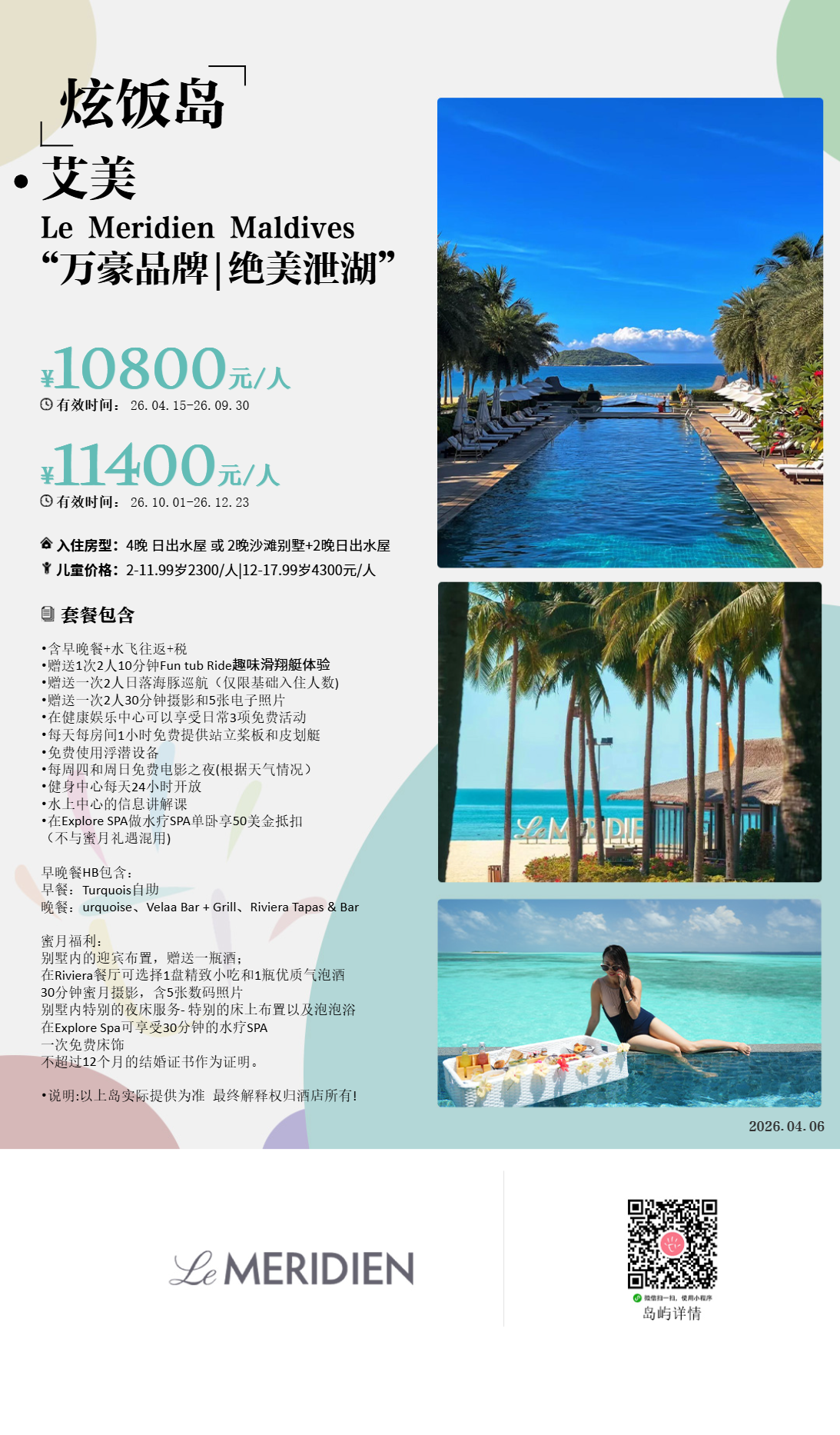 超大泄湖,意味着浮潜环境较差;目前度假村中国市场offer竞品岛较多,性价比不高。