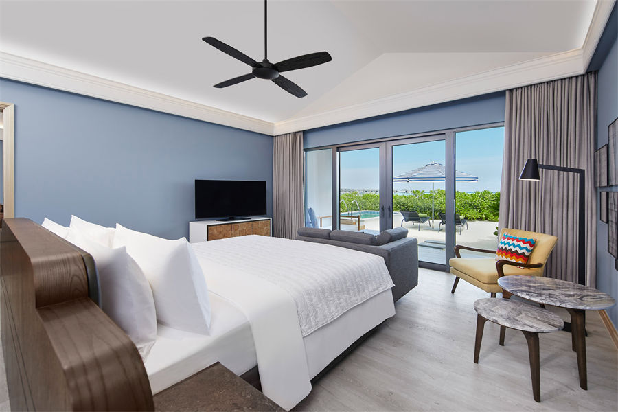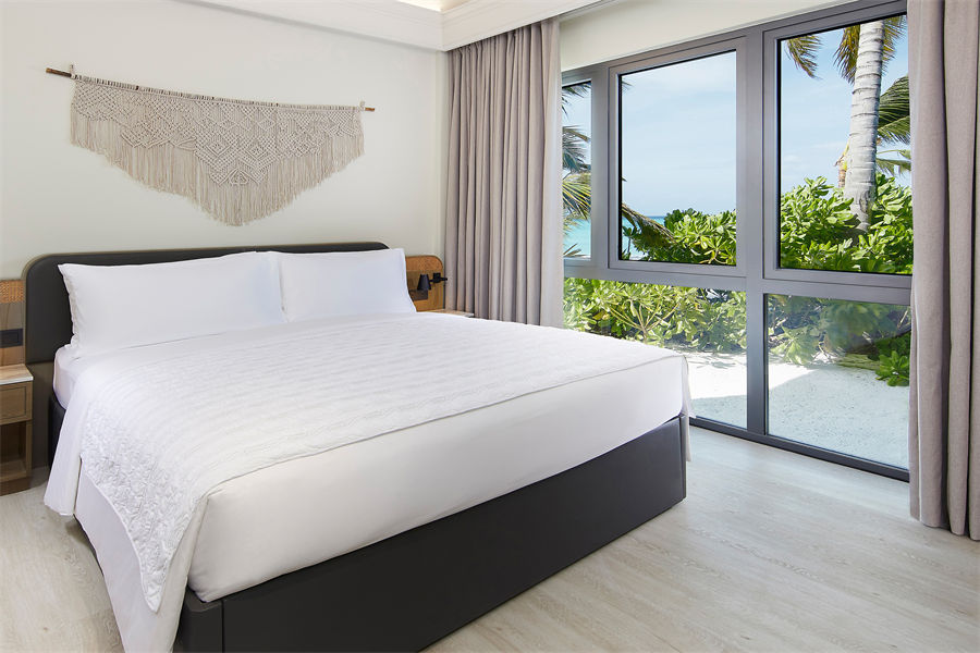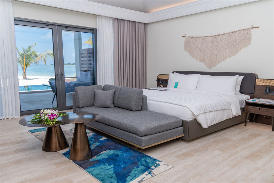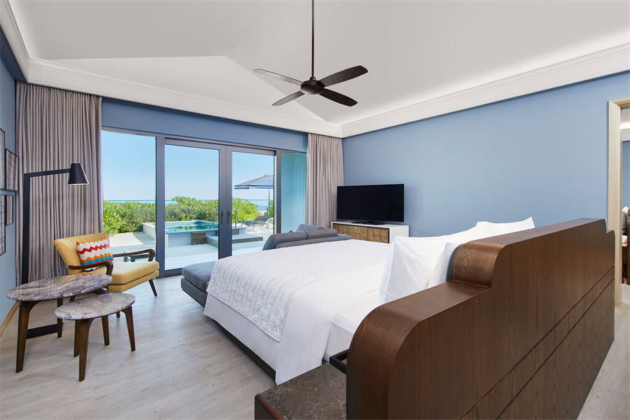 房型介绍:沙滩泳池别墅全岛仅4间,通向沙滩的位置有专属的私人泳池,房间面积82平米,最多可入住2大1婴儿。别墅提供一张大床,迷你冰箱,生活/休息区等等,一应俱全