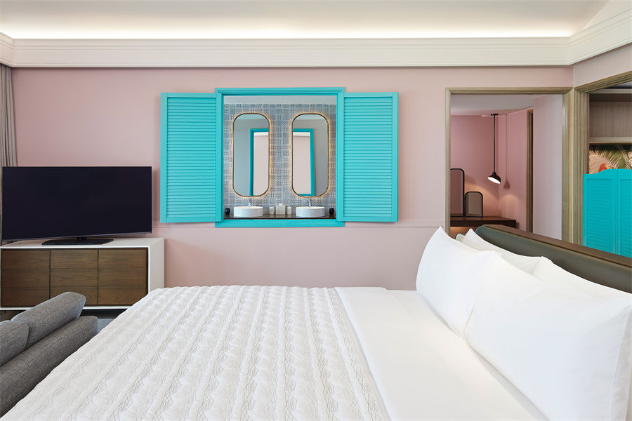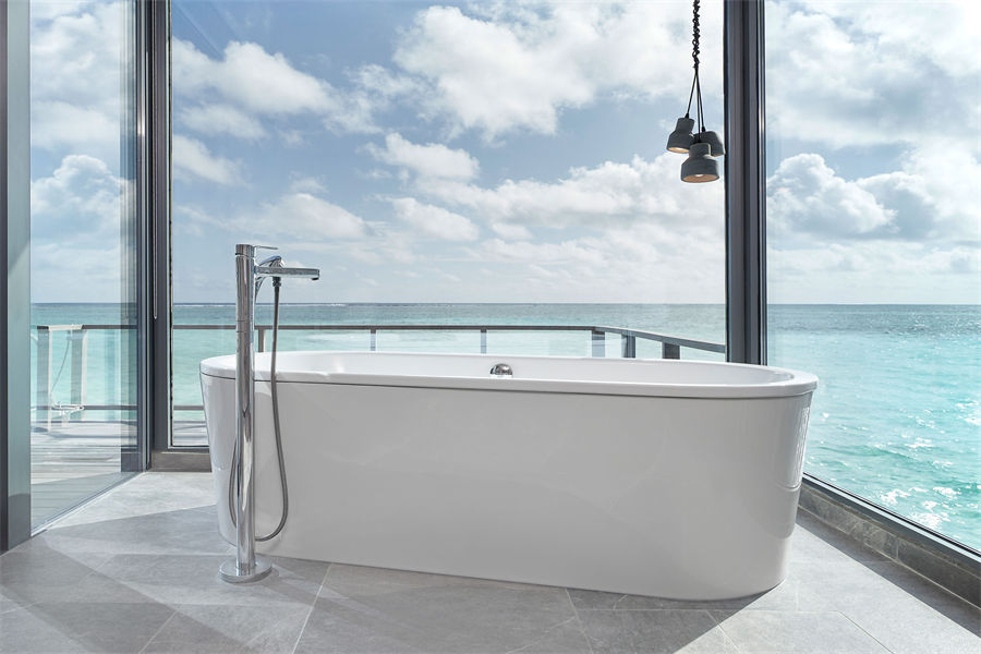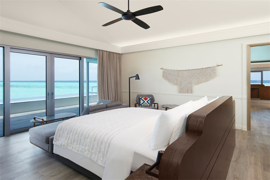 房型介绍:日落水上别墅总共有36间,不带私人泳池。房间面积100平方米,最多可入住2大1小。别墅配有1张大床,迷你冰箱等等设施,一应俱全