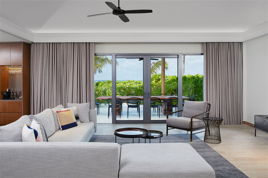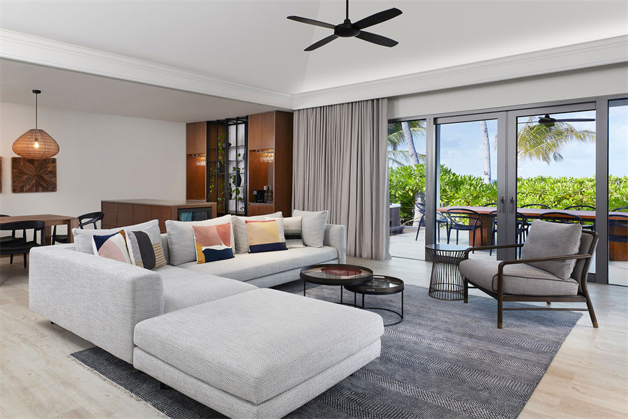 房型介绍:三卧室别墅全岛仅1间,位于岛屿东侧,日出景观,位置绝佳。面积280平方米,总共可以入住6大1小1婴。别墅配有三间卧室,每间卧室都配有一张大床,设有4间浴室,迷你冰箱,独立客厅等等,一应俱全