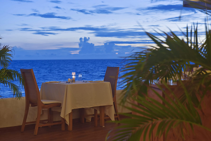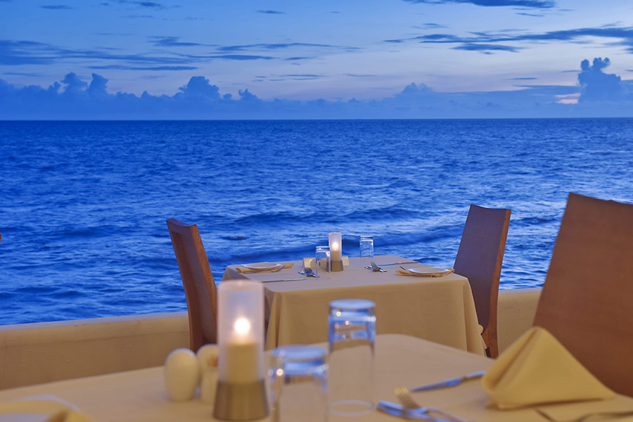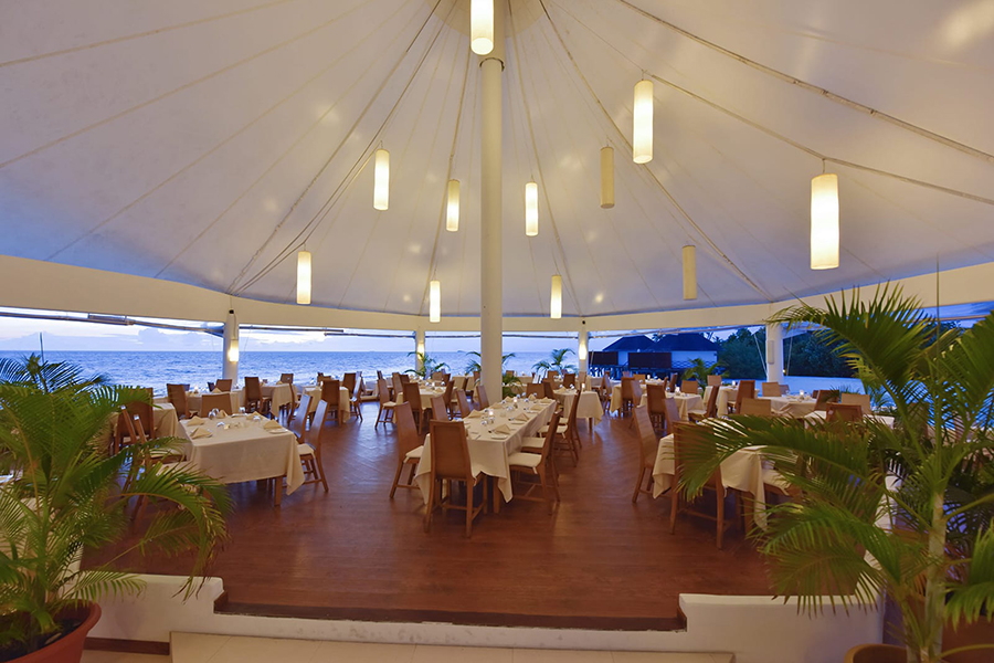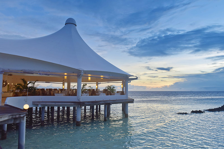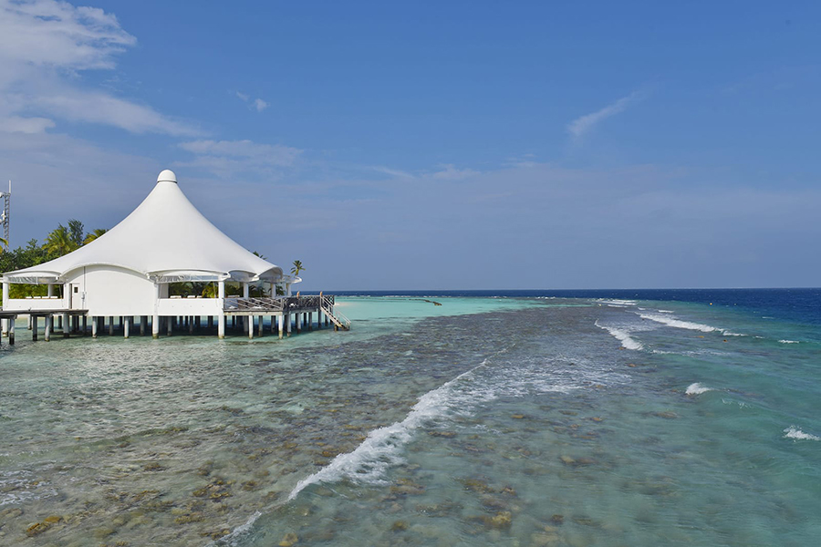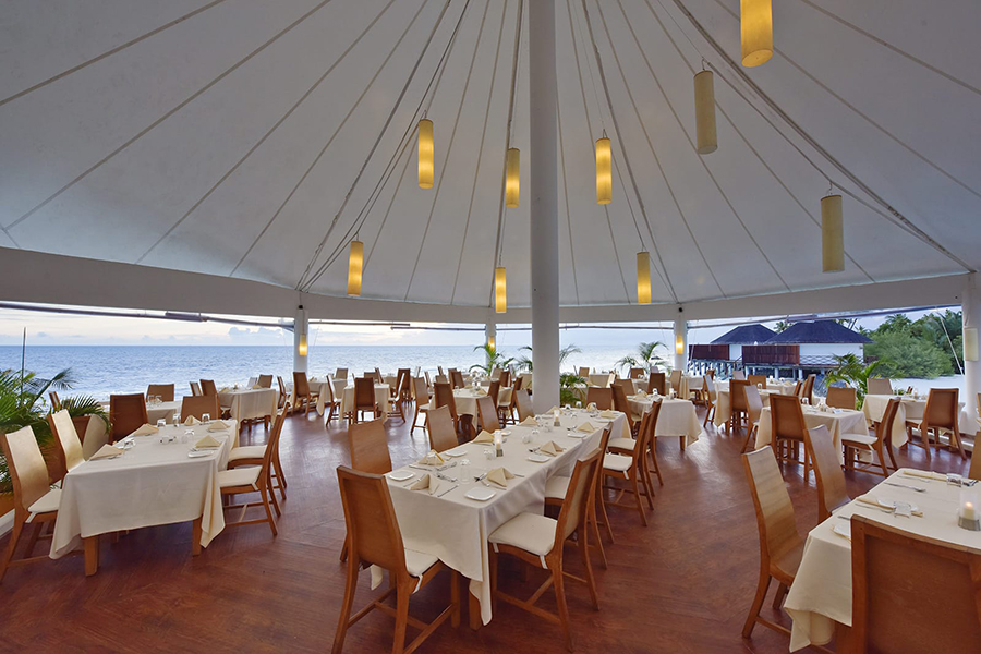 餐厅介绍:主餐厅拥有华丽的白色屋顶,漂浮在泻湖上,提供早餐、午餐和晚餐,自助餐形式提供各种国际和地区美食,以满足每个人的口味。技艺精湛的厨师提供精选的国际美食,确保最佳用餐体验。在早餐、午餐和晚餐时段享用自助餐,包括热闹的主题之夜。周日晚上的晚餐是马尔代夫/亚洲之夜,提供主题菜单,汤、面包和甜点都是自制的,新鲜的热带水果很美味。自助餐系列还包括现场表演、烹饪台,我们的厨师会根据您的喜好为您准备食物。
