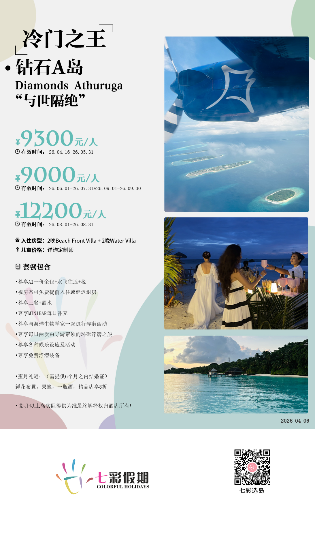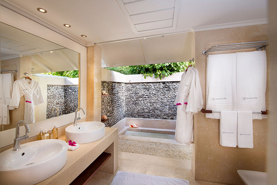房型介绍:40 间海滨别墅面向泻湖的原始浅水区,设有可直接通往海滩的私人甲板阳台。客房配有定制设计的家具、独立空调和吊扇、带双水槽和露天淋浴的大型户外浴室。