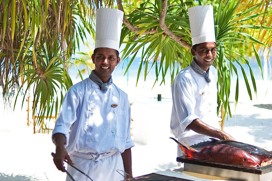 餐厅介绍:浪漫、独特、精心准备的个性化海鲜用餐体验,为宾客提供定制用餐体验的机会。不同地点提供特别套餐、龙虾餐或印度洋晚餐,使晚餐变得非凡而非凡。它可以在海滩上、水上别墅露台上或海滩简易别墅前。