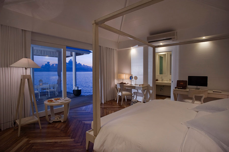 房型介绍:“两卧室泳池水上别墅”位于码头尽头的独家位置,设有2间带大型公共露台和可直接通往水面的小型游泳池的双人间。所有客房均配有个性化的空调、雅致的家具,包括定制的藤制家具、四柱特大号床、意大利现代照明和手工制作的木质镶木地板。别墅提供宽敞的起居空间,配有舒适的沙发床和迷你吧角。大浴室配有双盥洗盆、梳妆镜、浴袍、各种个性化高级洗浴用品和带双淋浴喷头的宽敞步入式淋浴间,可直接通往室外露台。