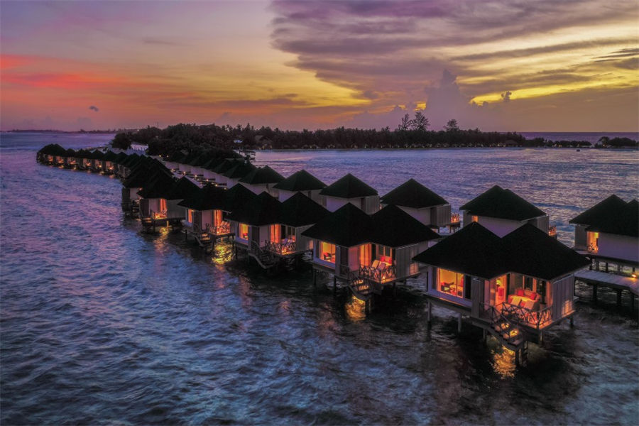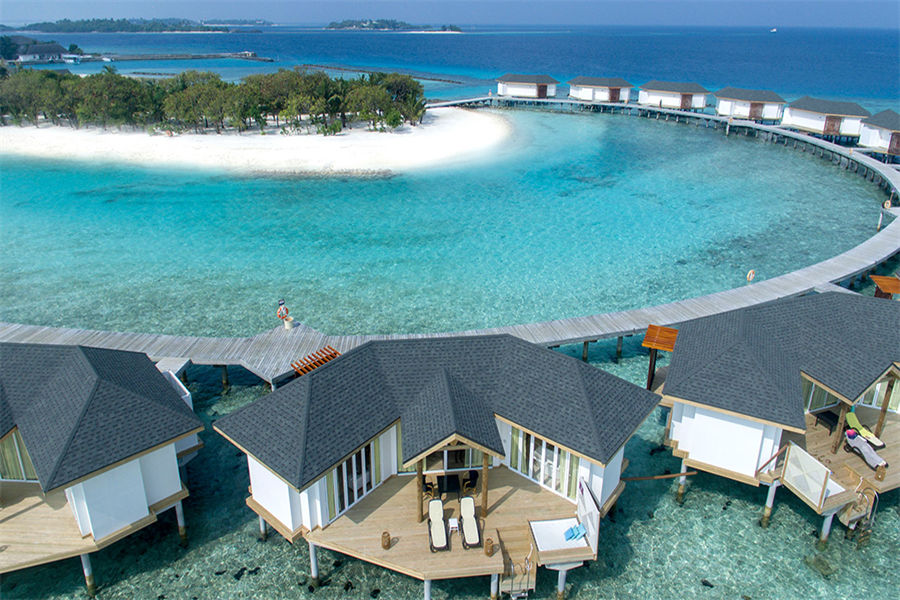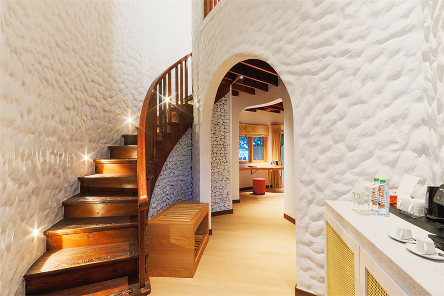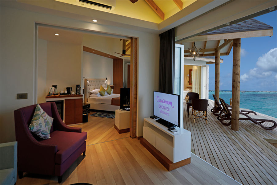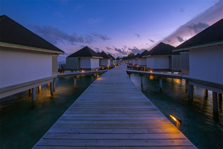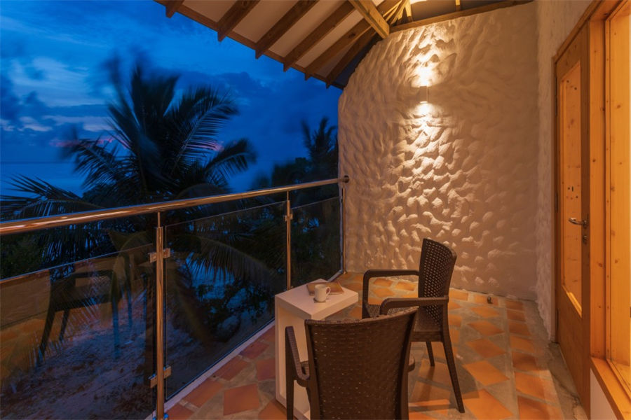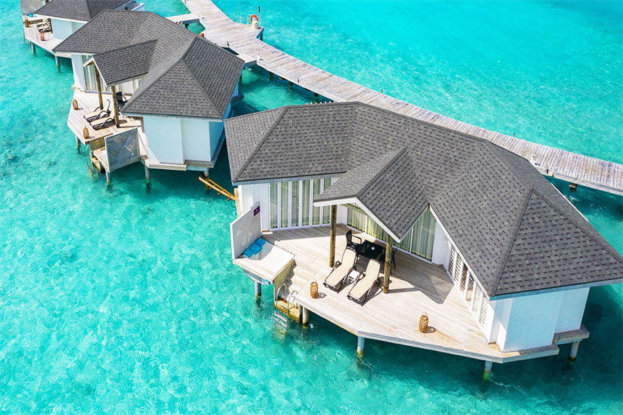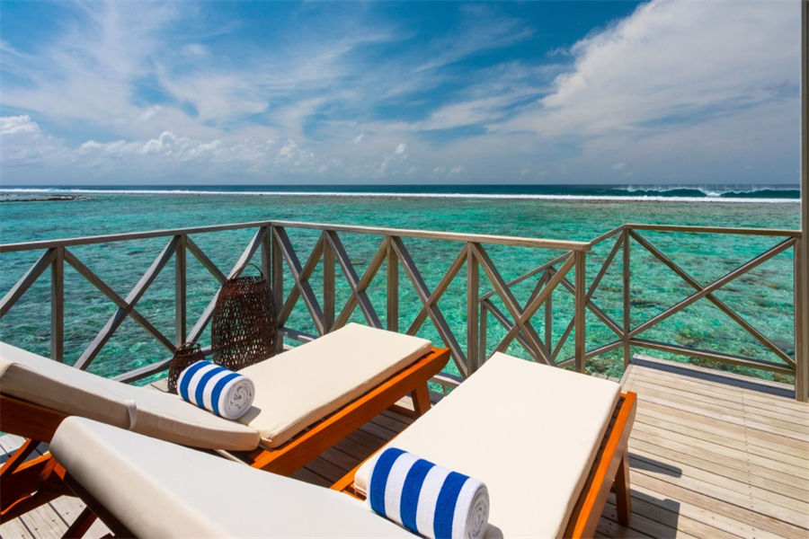 房型介绍:水上别墅位于岛的西南角,凌空于水面上。走进房间,华丽的马尔代夫雕刻、水流按摩浴缸、以及漂亮的室内设计都会让你大吃一惊。走出房间,躺在遮阳甲板上休息,让你棕褐色的皮肤晒得更完美,走下旋梯,就能够立刻投入到像水晶一样蓝的浅海里。