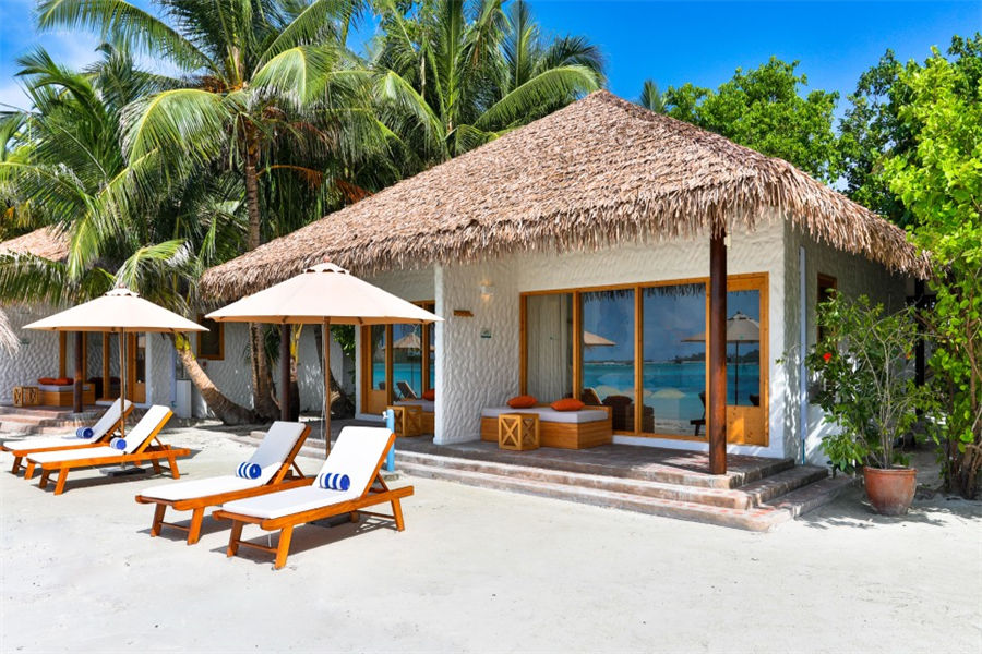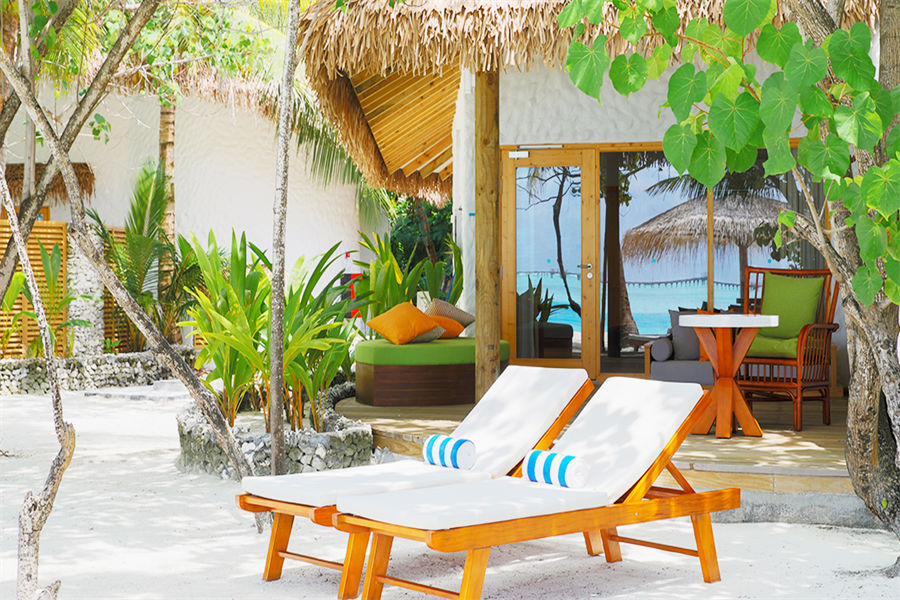 房型介绍:95㎡的轻奢沙滩套房,全岛仅8间,每间套房都有充足的空间,可以欣赏到花园和海洋的美景,还有一间豪华的露天浴室,配有淋浴和按摩浴缸。