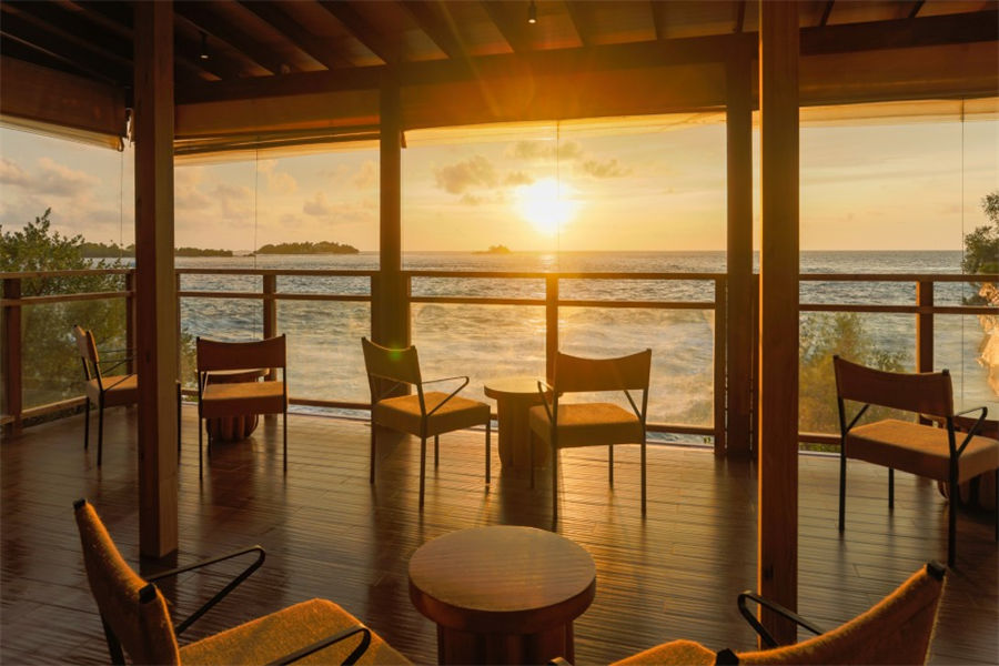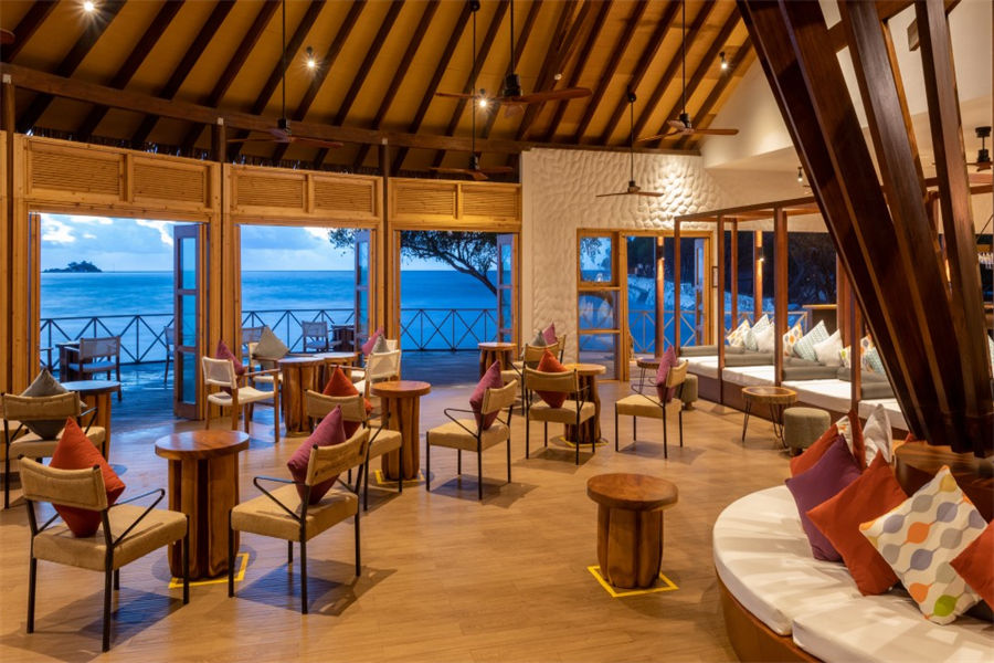 餐厅介绍:Rehendhi餐吧配有苹果绿和李子色的椅子,欢迎入住水上套房和沙滩泳池套房的客人前来用餐。美味的自助餐既可以在餐厅内享用,也可以在甲板上和星空下享用。稍微挪动脚步,你会发现这里酒吧,你可以一边品酒一边俯瞰海景。