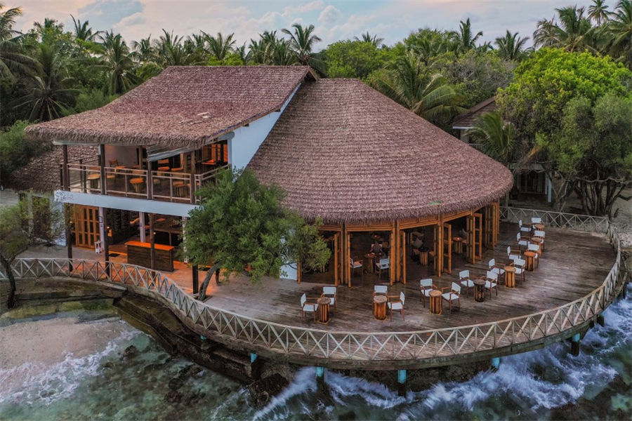 餐厅介绍:当你在冲浪休息的露台上俯瞰着不断起伏的海浪,会发现这里有一个叫Raalhu的酒吧。在这里啜饮一杯精心制作的鸡尾酒,会瞬间被悠闲的氛围和可口的食物所诱惑。在冲浪一天后,这里是放松身心的理想场所。