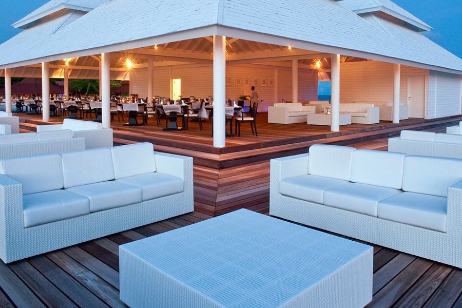 餐厅介绍:餐厅位于度假村南侧,毗邻海滩,俯瞰蔚蓝的大海,供应早餐、午餐和晚餐。餐厅提供丰盛的自助餐,可满足各种口味,并可应要求提供素食和纯素食菜肴。国际自助早餐包括各种新鲜的热带水果和果汁、自制面包和糕点、欧式冷盘和奶酪以及由厨师在烹饪台烹制的现点现做的鸡蛋。自助午餐提供从比萨饼到意大利面,再到沙拉的多种选择,还有一个烧烤架,当天捕获的鱼和各种肉类在您眼前烹制到完美。酒店每天供应当地菜肴,还提供许多其他国际美食。甜点自助餐供应各种新鲜水果、蛋糕、奶油和自制的“冰淇淋”。餐厅全年开放,向所有客人开放,但水上别墅的客人需要预订,以享受最佳的用餐体验。