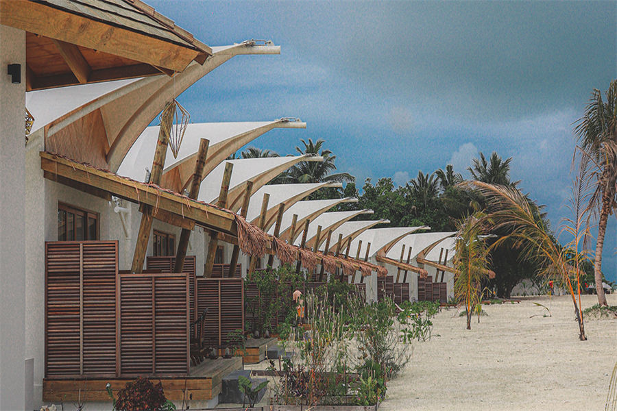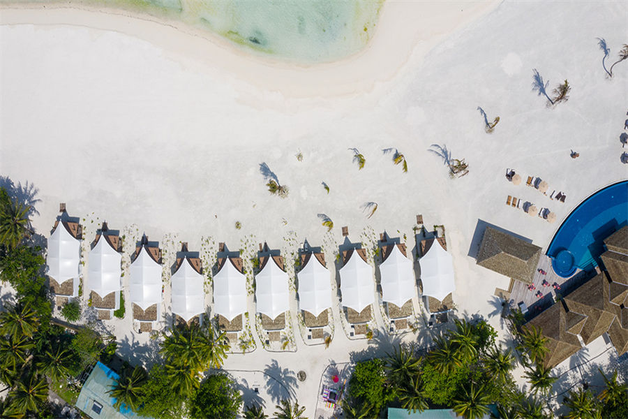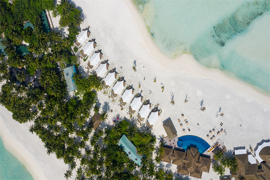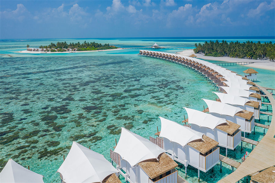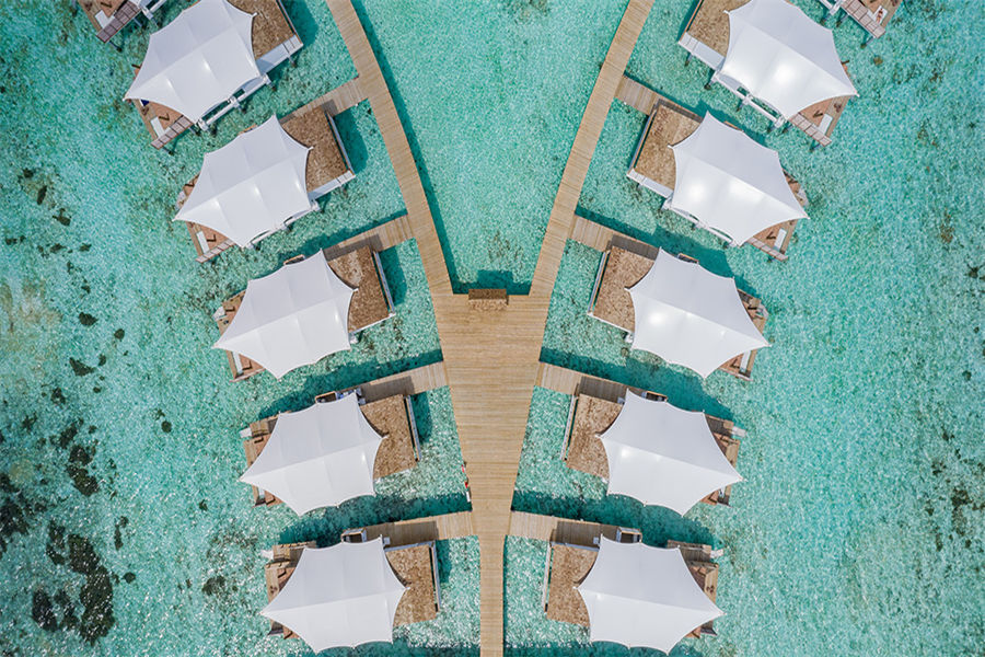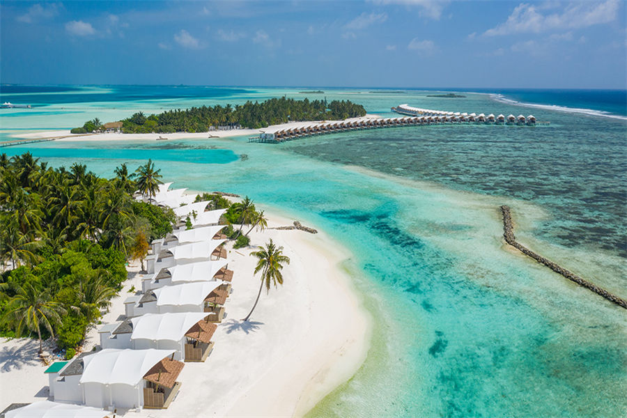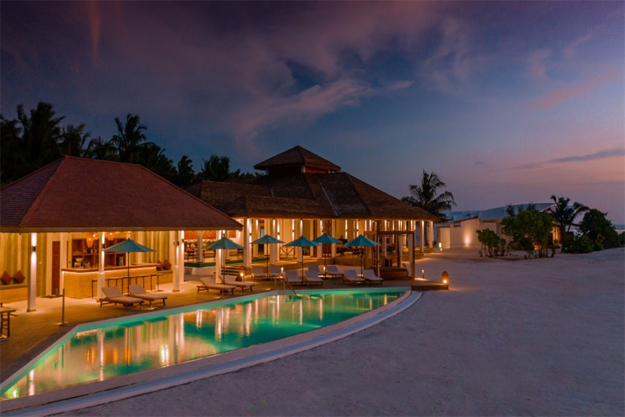 马尔代夫哈库拉Cinnamon Hakuraa Huraa Maldives,位于美慕环礁,是环礁内第一座建立的度假村,距离马累约130公里,乘坐内飞或水飞即可抵达。整个度假村由2座岛屿组成,由主岛和新建的成人岛构成,建筑主要为白色为主,俯瞰非常壮观,靠近冲浪区域的沙滩别墅距离海边非常近,没有任何植物折腾,推开落地窗走过露台甲板就是沙滩。因为度假村主打冲浪,所以欧美回头客非常多。
