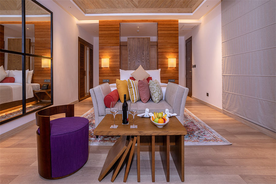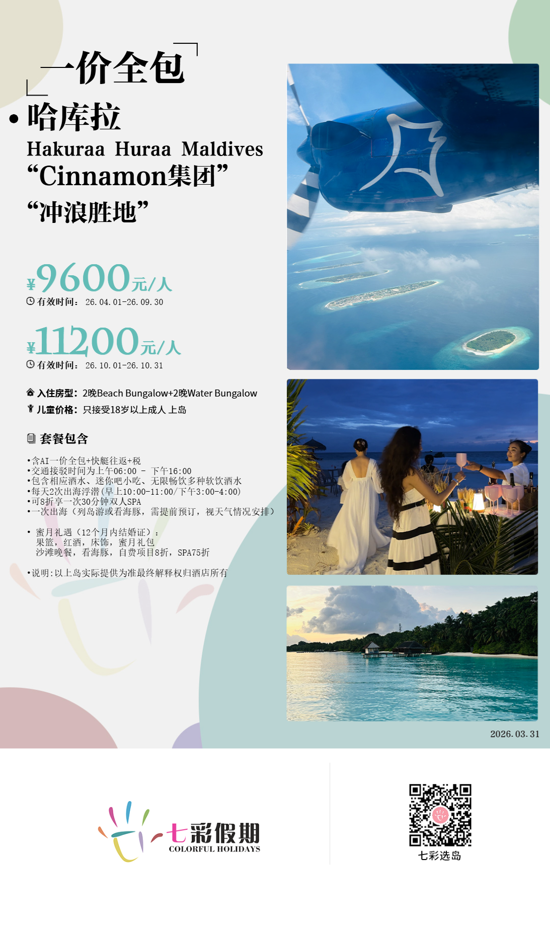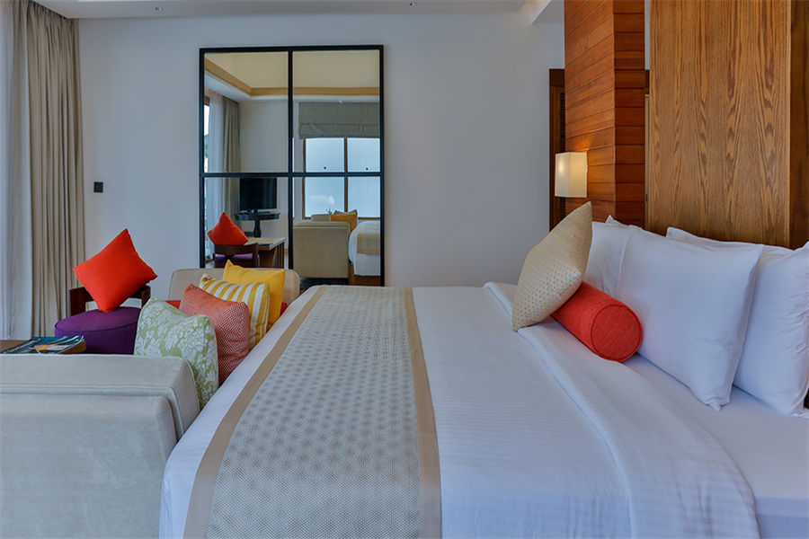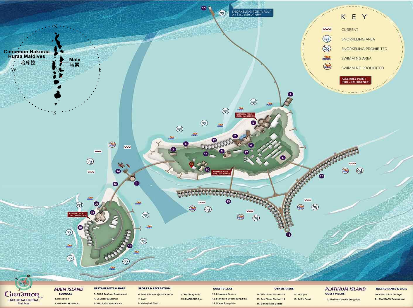 马尔代夫哈库拉Cinnamon Hakuraa Huraa Maldives,位于美慕环礁,是环礁内第一座建立的度假村,距离马累约130公里,乘坐内飞或水飞即可抵达。整个度假村由2座岛屿组成,由主岛和新建的成人岛构成,建筑主要为白色为主,俯瞰非常壮观,靠近冲浪区域的沙滩别墅距离海边非常近,没有任何植物折腾,推开落地窗走过露台甲板就是沙滩。因为度假村主打冲浪,所以欧美回头客非常多。
