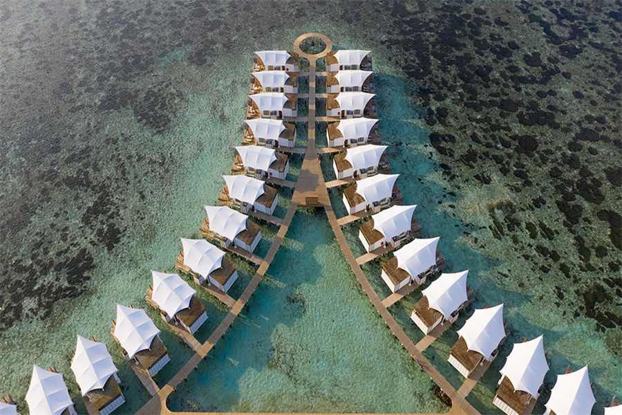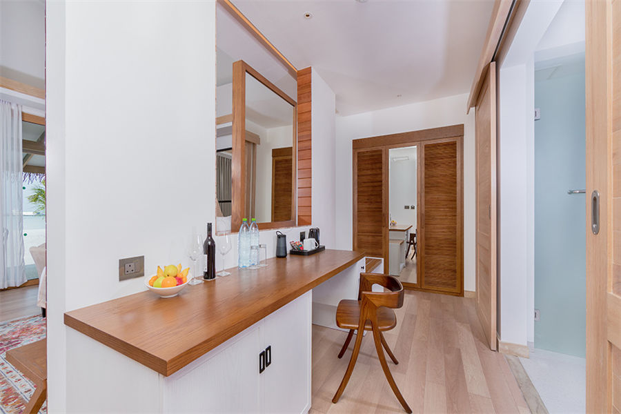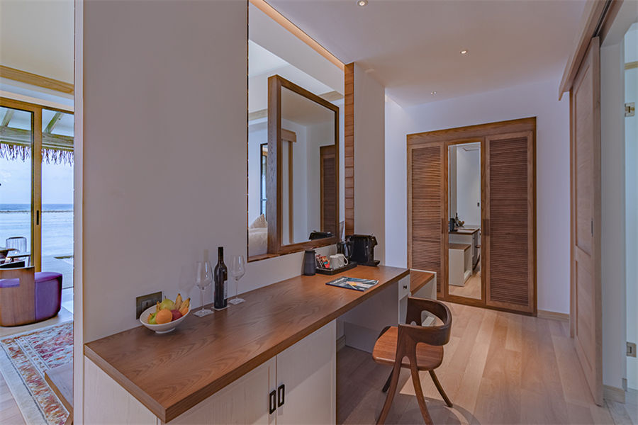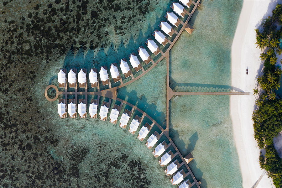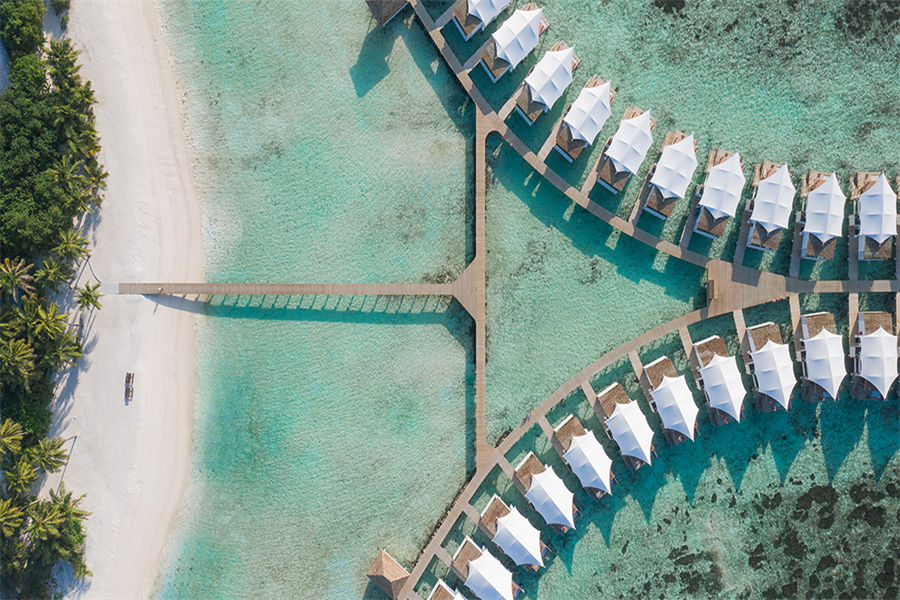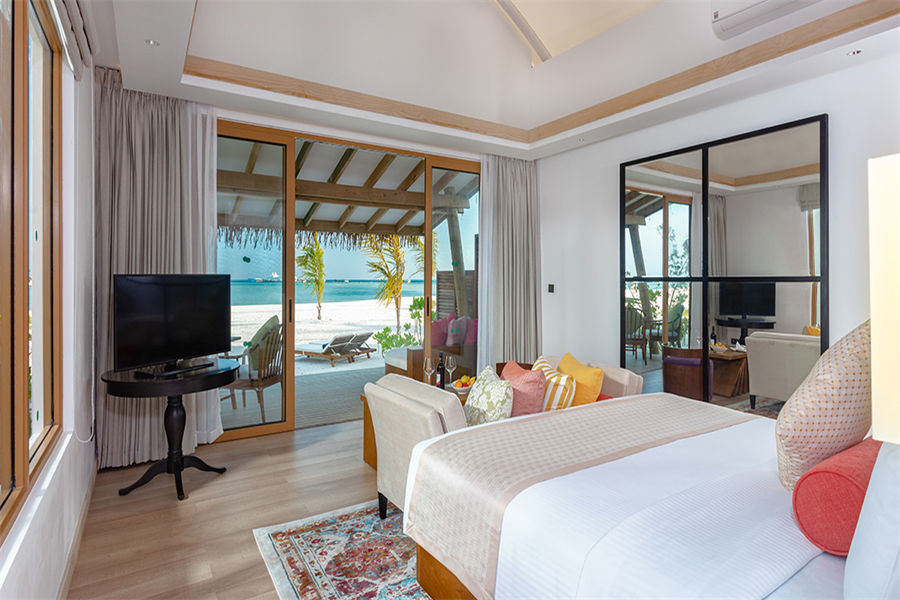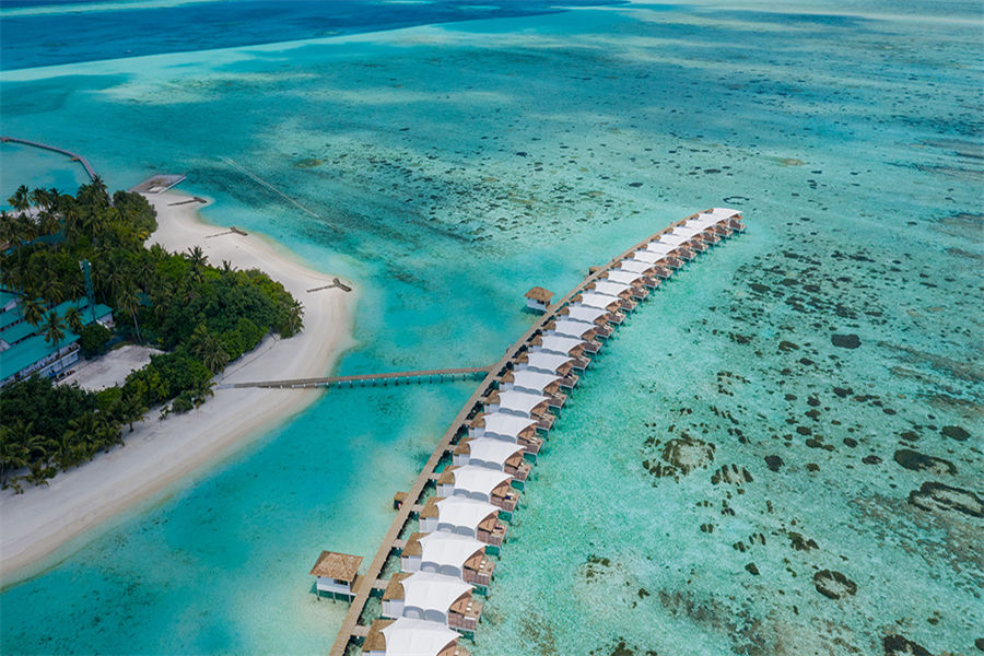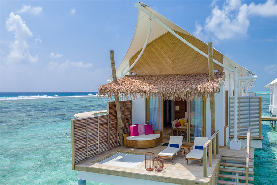 房型介绍:一旦您步入这个岛屿,您便可以看到这一排排水上的房屋连着岛屿的东部边缘。水上房屋仅离沙滩几米远,成排的形状设计,给人一种超乎想象的美观感。泻湖上的吊床是您选择的日落或日出美景的最佳选择。非常适合度蜜月的人,通过客厅的玻璃地板,一窥等待你下一次浮潜的海洋生物,并通过私人露台直接进入泻湖。
