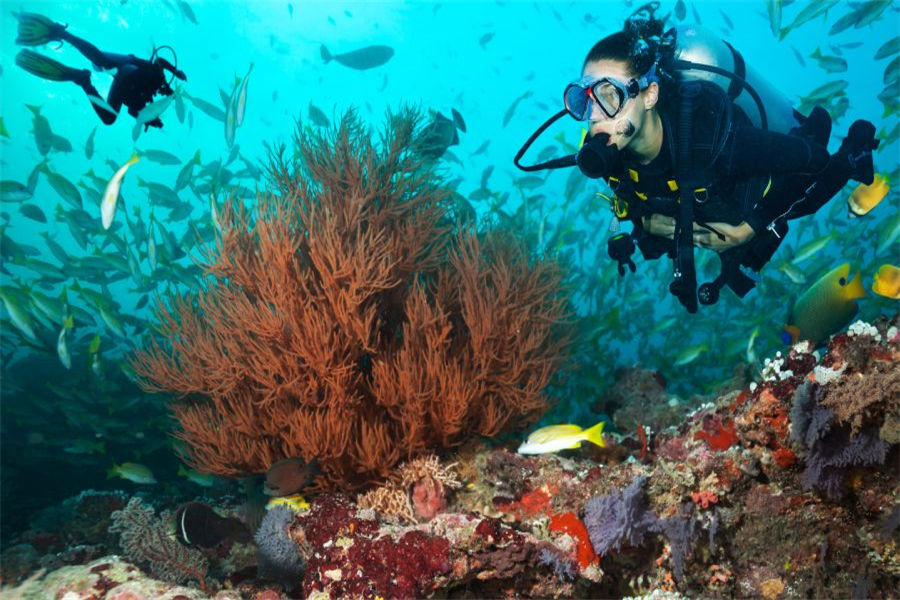活动简介:周围无污染的环境与清澈的海水和翁郁的树林加上邻近珊瑚礁潜点多,可进行的潜水活动也很多。Dive&Sail是度假村长期的潜水中心合作伙伴,自1999年以来一直在Meemu环礁运营。有一支国际潜水教练团队随时为您提供指导,无论您是初学者还是专家,都可以毫不犹豫地加入!