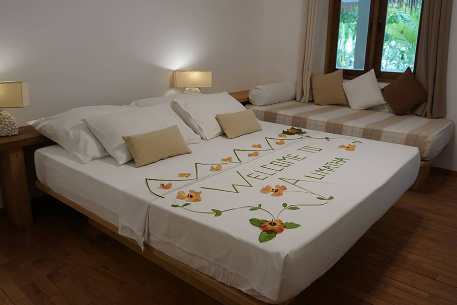 房型介绍:Alimathà 的 26 栋花园别墅被绿色植物所环绕,白天的大自然声音和夜晚的寂静笼罩着迷人的魅力。花园别墅被高大植被的树荫所覆盖,享有独特的午后清新和带私人花园的露台,在岛屿的中心提供隐私和亲密感。