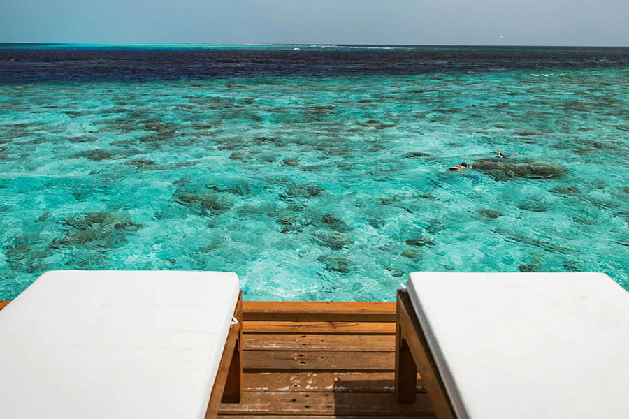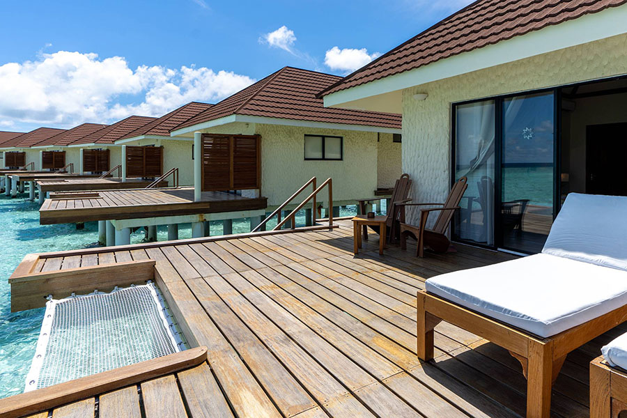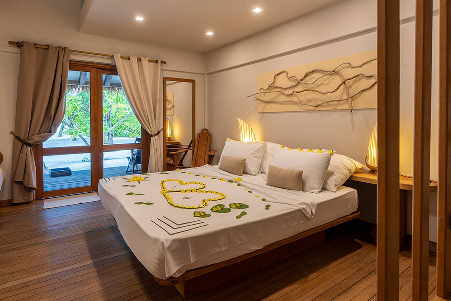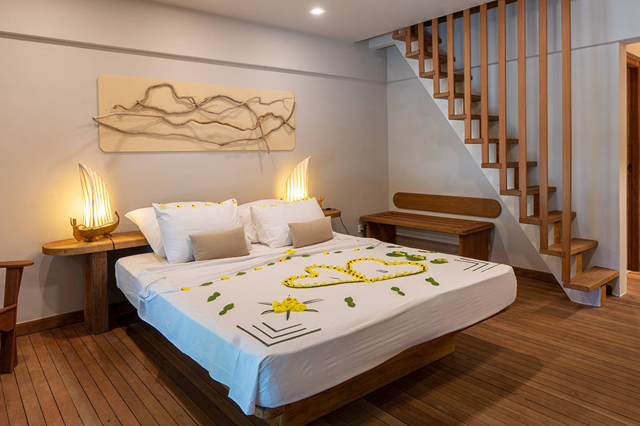 房型介绍:它们朝向北,在黎明和日落时分都转动的扇形中打开。它们位于岛上最安静的角落,笼罩在平静祥和的氛围中。Over Water是享受地平线魔力的完美选择,躺在私人露台上舒适的日光躺椅上。