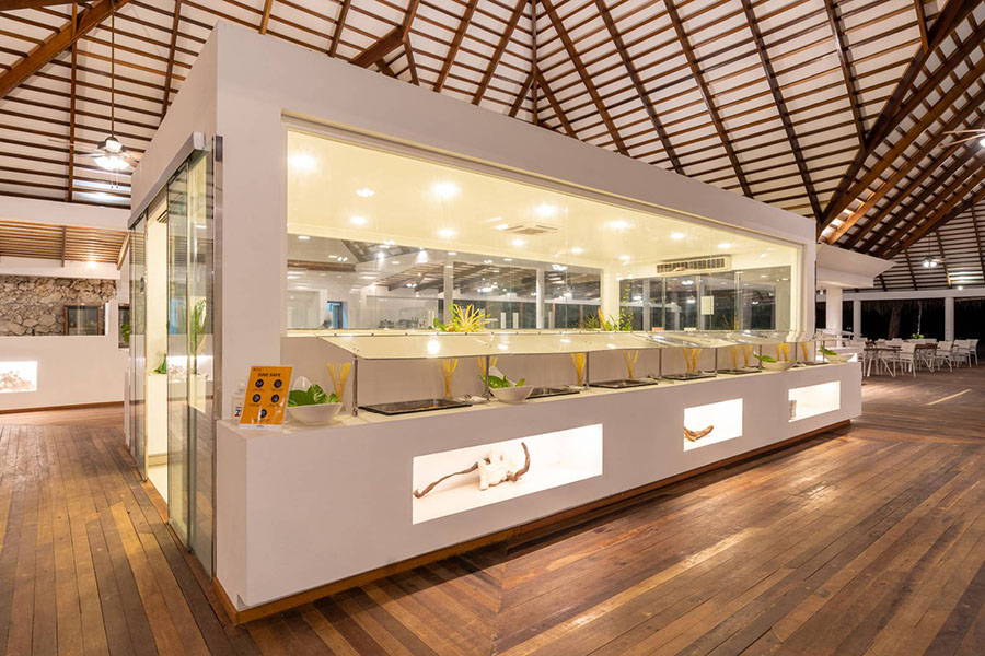 餐厅介绍:Alimatha 的 Sunset Bar 用它的名字来形容就完美无缺。面向日落,它在海面上的座位由树干制成,可直接通往地平线。日落酒吧位于水上酒吧附近的特殊位置,使一天中的最后几个小时成为真正的声音和色彩的诗歌。这里是告别阳光的理想场所,然后享用开胃酒和浪漫晚餐。