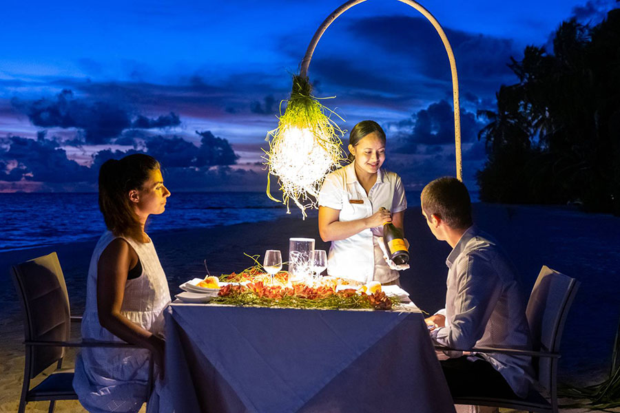 餐厅介绍:Alimathà 海滩餐厅俯瞰度假村的主要海滩,成为夜晚宁静和私密的地方。海滩餐厅可以在室内或星空下用餐,提供品尝菜单,根据意大利美食的经典,增强马尔代夫海的原材料。一个充满魅力和亲密感的地方,您可以在这里享用一顿特别的晚餐。