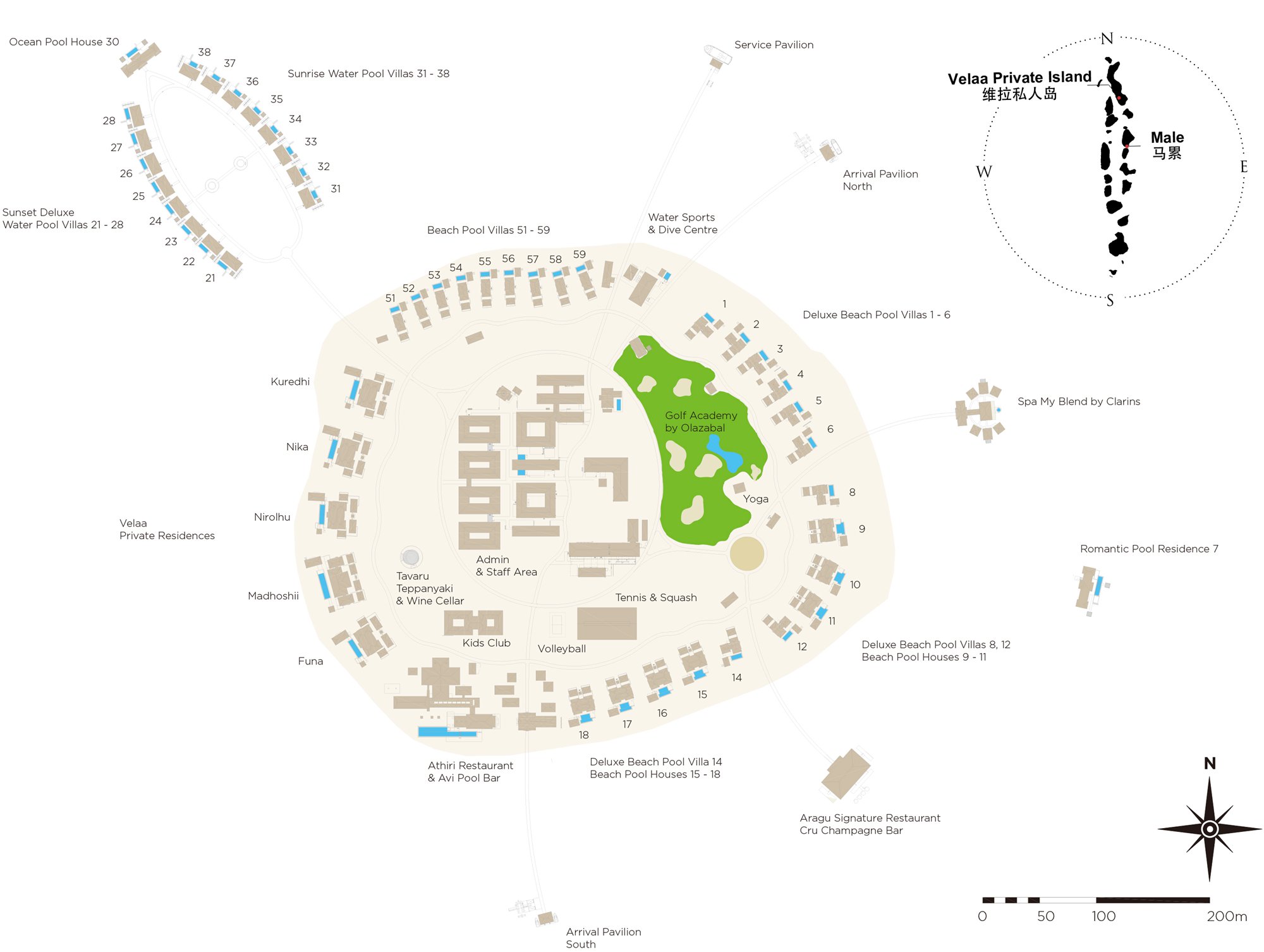 活动简介:Velaa高尔夫学院由约瑟·玛利亚·欧拉查宝 (Jose Maria Olazabal) 主持设计,他因精湛的短杆技艺而著名。学院拥有无可匹敌的挥杆体验,能满足您的所有愿望,为您留下值得永远珍藏的美好回忆。出自欧拉查宝之手的Velaa高尔夫学院拥有 9 个不同的发球台、6 个果岭、7 个沙坑以及一座马尔代夫特有的绿宝石色宁静湖泊,能以独有的私人岛屿环境,为客人提供其他球场无法企及的挥杆体验。Velaa高尔夫学院是名不虚传的“高尔夫练习天堂”,学院能够为不同水平的学员量身制定学习课程,重点弥补技术短板。岛上的专业高尔夫教员均拥有美国职业高尔夫球协会会员资格,他们丰富的经验可以帮助各种水平的高尔夫爱好者提升球技。