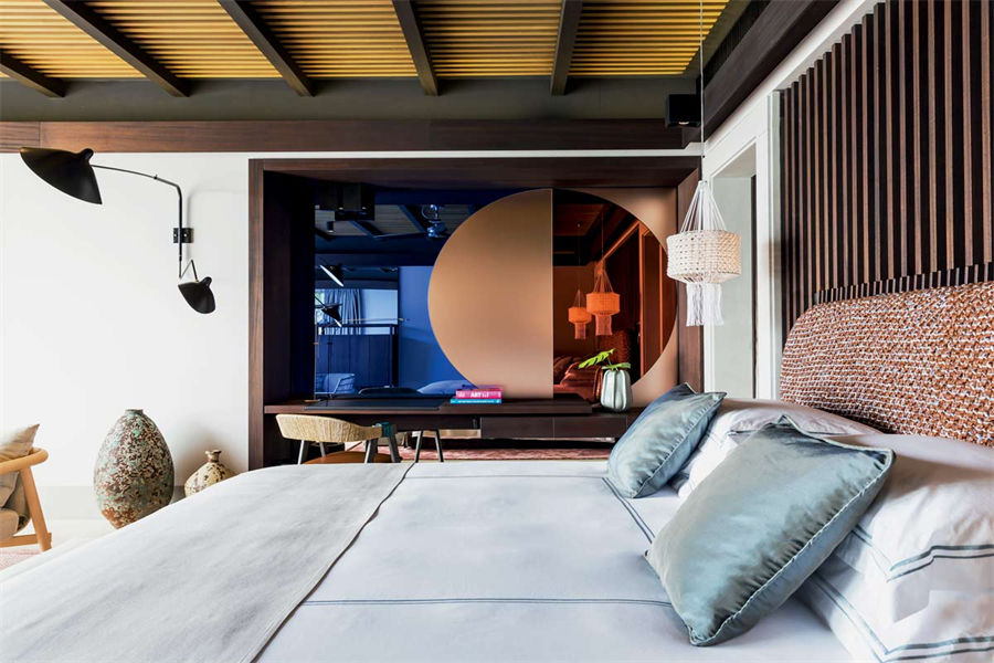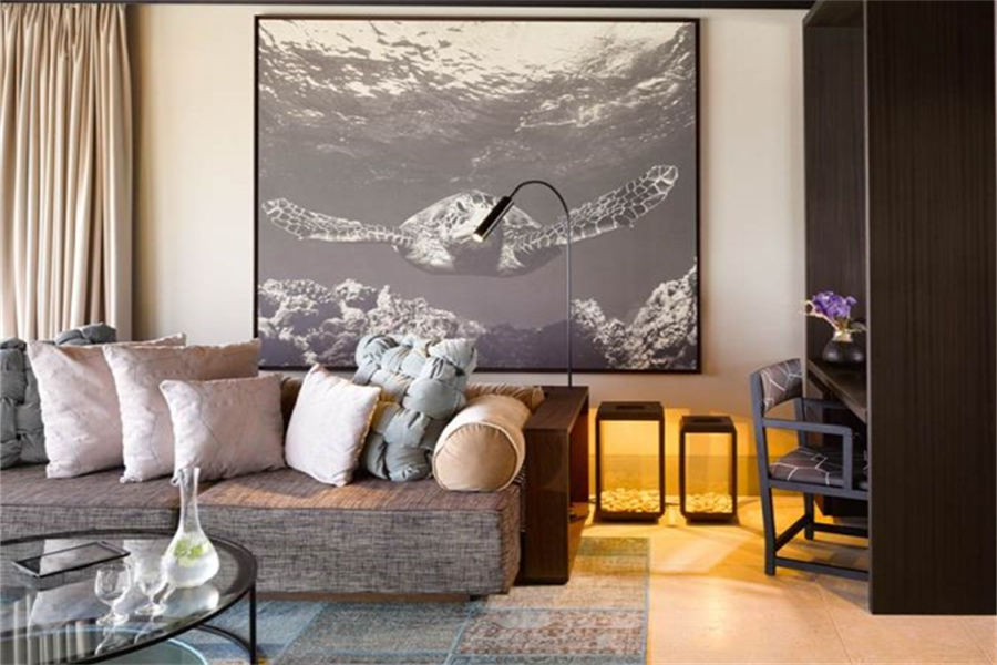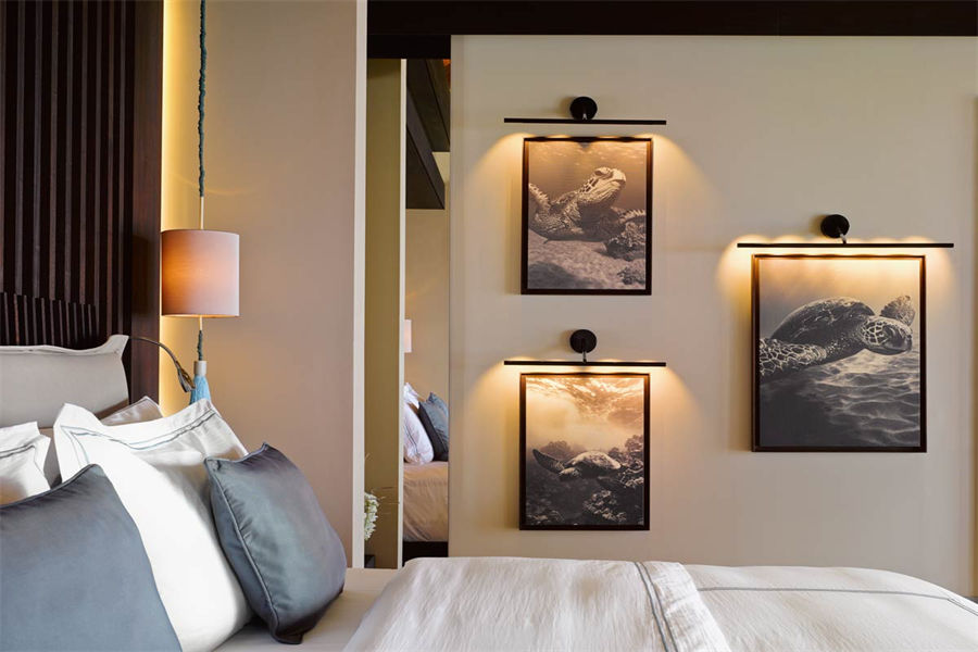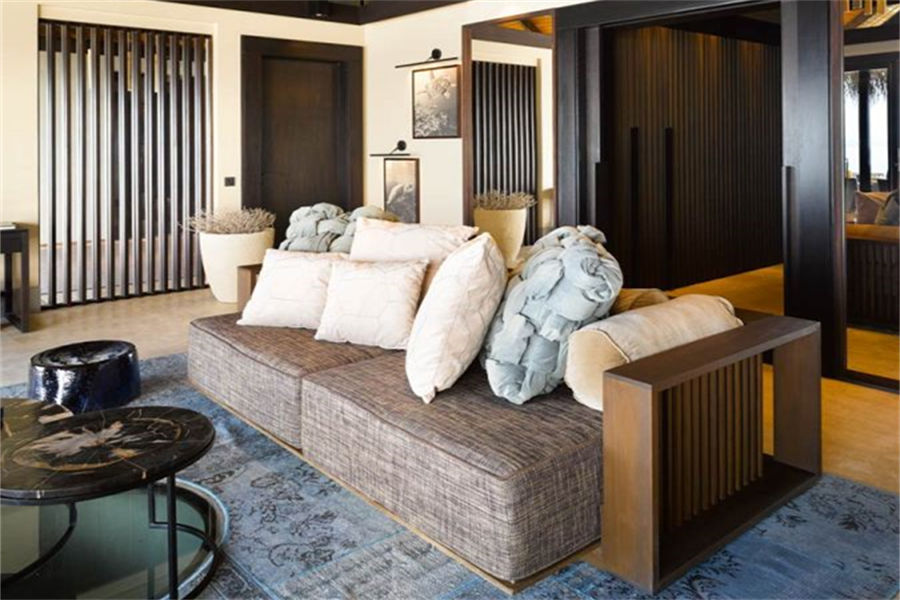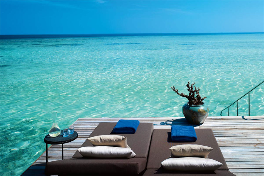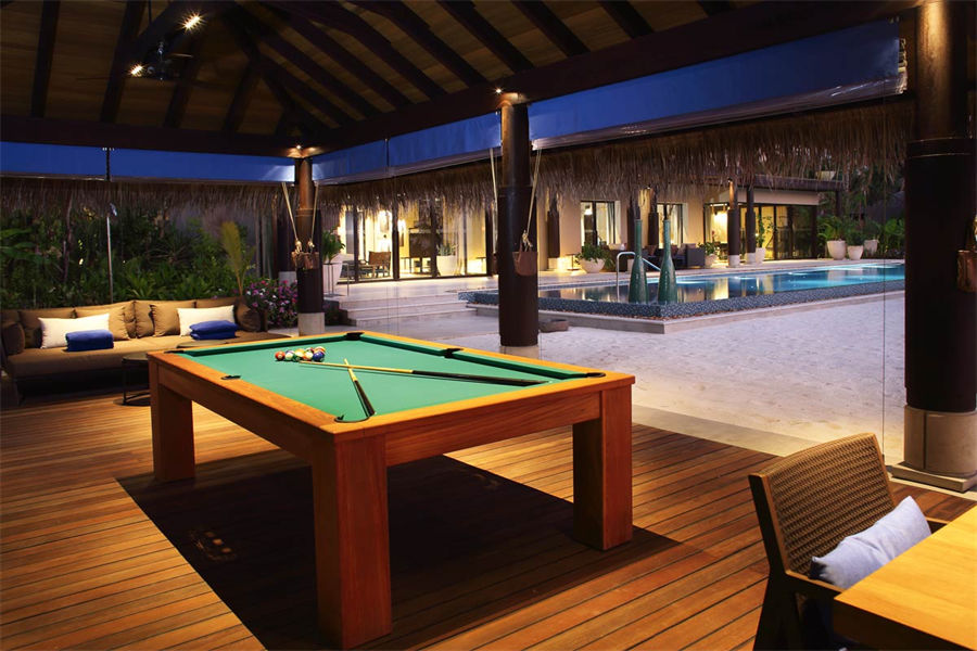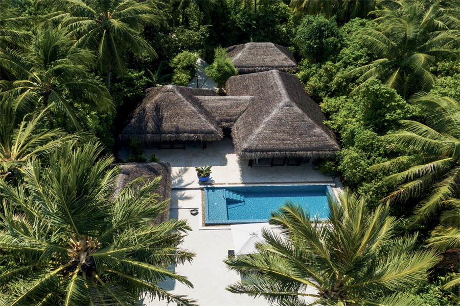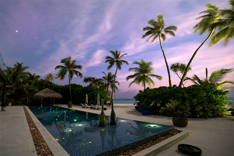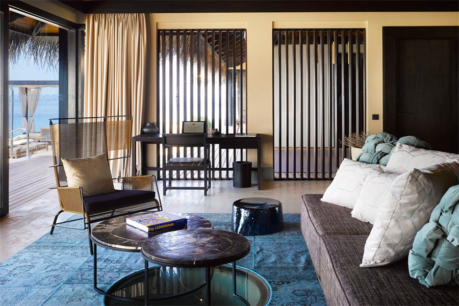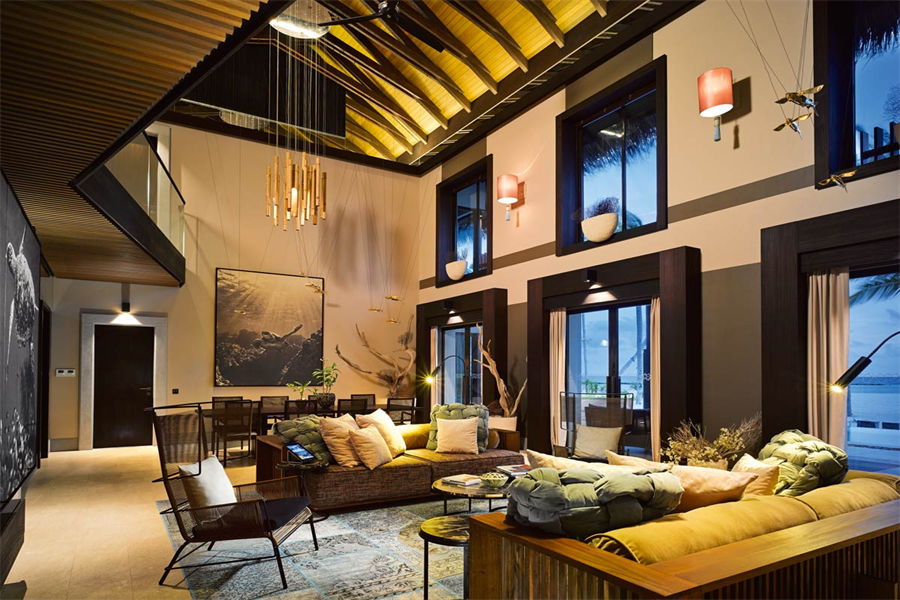 房型介绍:全岛仅1栋的浪漫泳池住宅面积598㎡,这座单卧别墅位于泻湖之上,极具私密性,仅能靠船舶抵达,拥有一望无垠的宽阔海洋视野和其他地方无法企及的私密与浪漫,是蜜月新人或寻找终极奢华客人的理想之选,更有私人厨师和管家提供无微不至的贴心服务。所有房间均可通往露台,按摩浴缸、泳池、阳光甲板和下沉式浴池一应俱全,从不同角度可观赏到变化多端的海平线风光。傍晚,来到水下用餐区或水上用餐凉亭中一边享用美食,一边观赏落日美景,或是舒适地躺在豪华躺椅上,漫不经心地啜一口饮料,都惬意非凡。室内采用天然材料和中性色调装饰,时而跳入眼帘的印度扎染布元素或动物印花都洋溢着趣味。别墅内配备私人健身房和水疗护理房,方便与舒适的私密享受让人不舍离开。