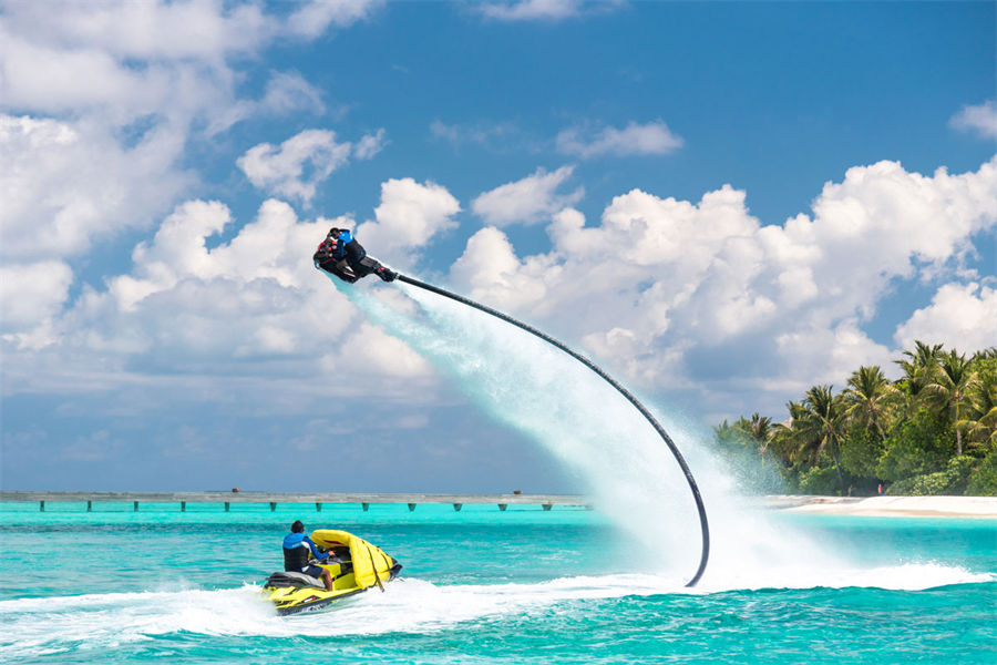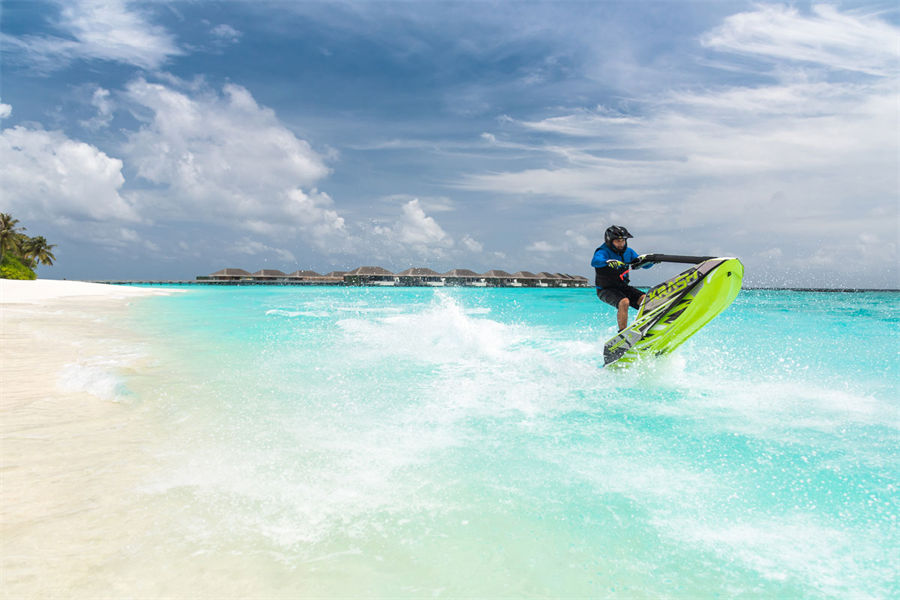 活动简介:借助丰富的高科技装备,让您的肾上腺素飙升,为实现冒险梦想行动起来。划一艘Weta三体船或Topcat K1双体帆船,沿着Velaa私人岛的环礁扬帆起航。或乘坐水上摩托车极速划过海面,体验无限刺激,或像电影中詹姆斯·邦德一样,乘艘 Sea Bob潜水器,探索隐藏在环礁中的奇妙世界: 或踏上站立式冲浪板,围绕velaa私人岛随心所欲地巡游、观景、冲浪:或参加帆伞或风筝冲浪,在广阔无垠的海面上自由“飞翔”。