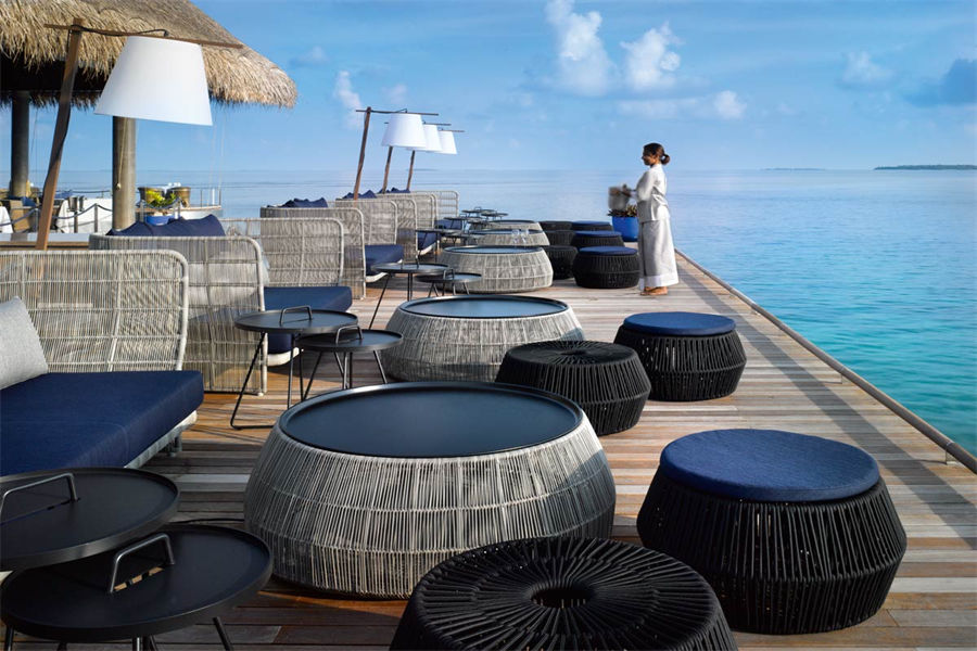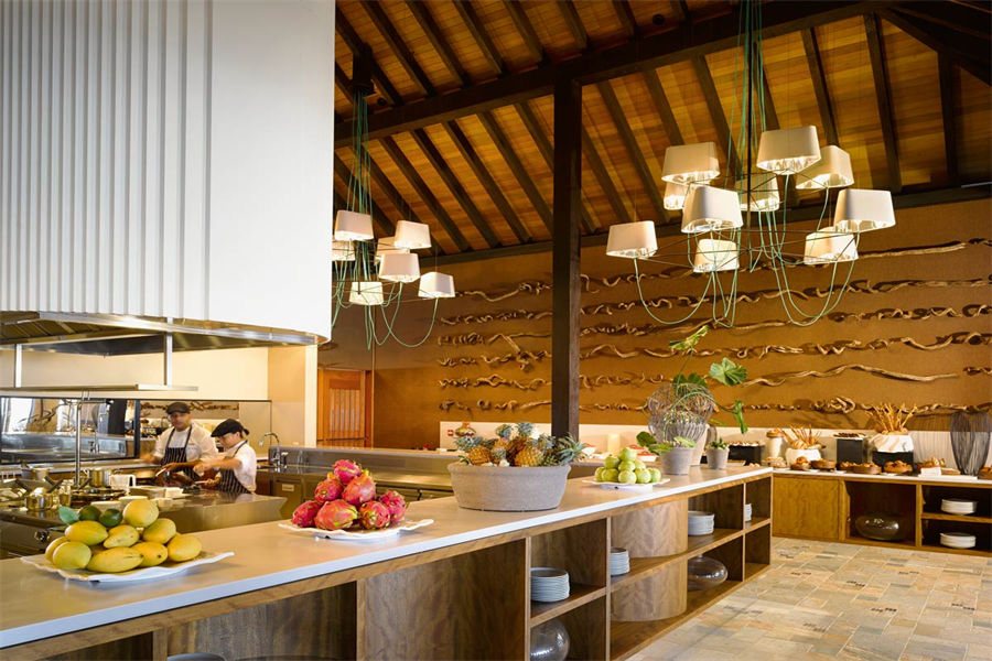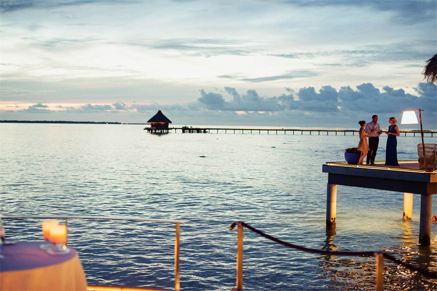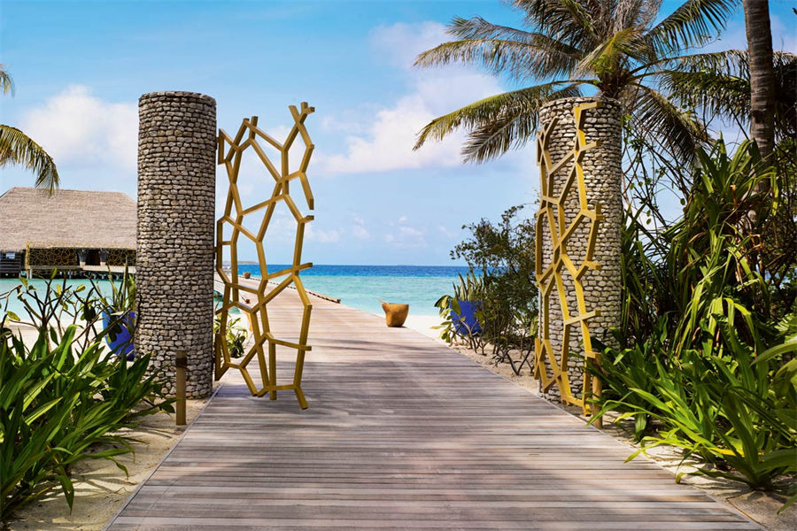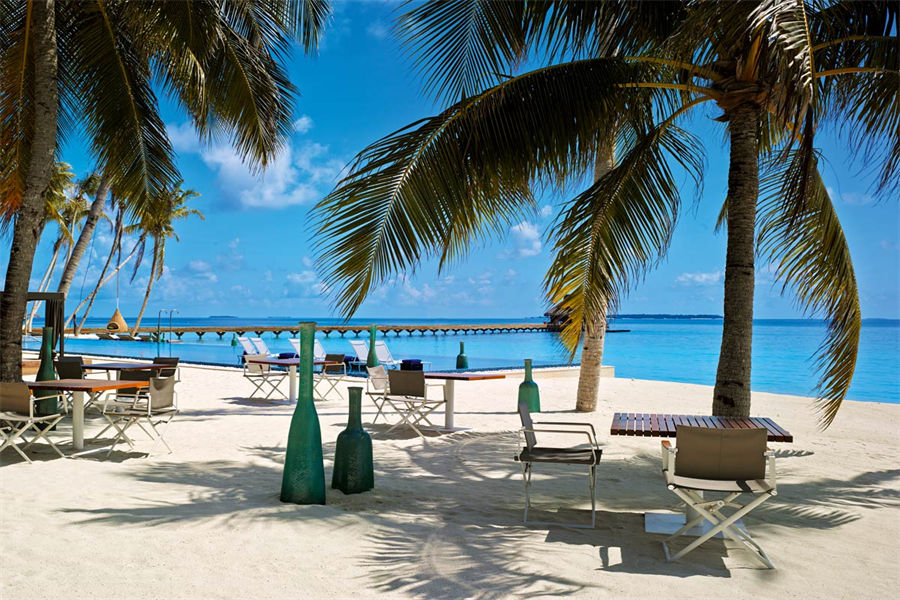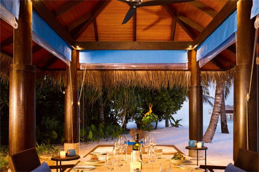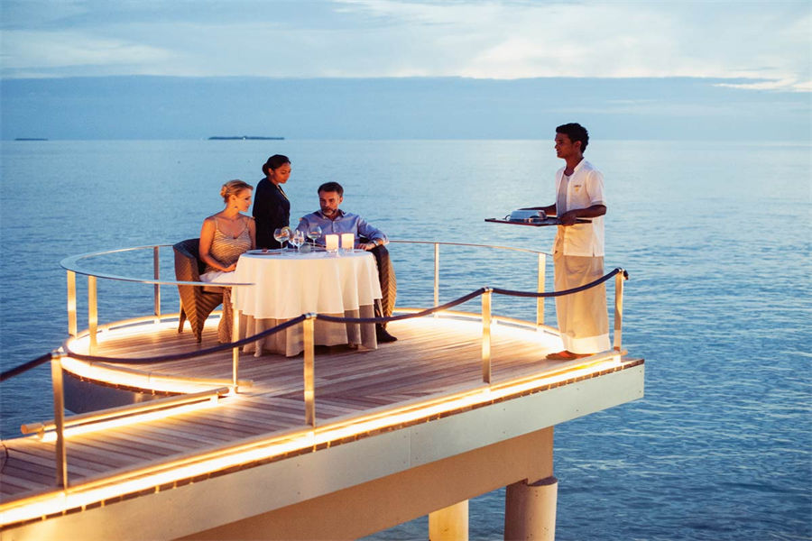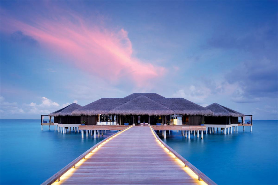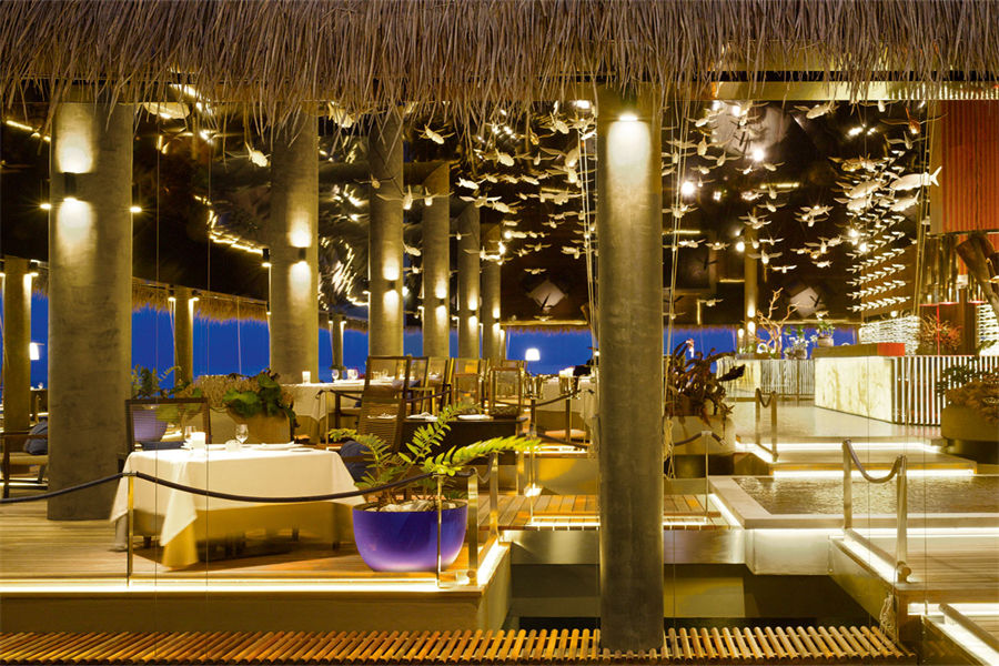 餐厅介绍:Aragu餐厅和Cru酒廊建在岛屿东南方的泻湖之上,通过架设在水面上的木板连接。餐厅的大门用无规则的装饰框搭建而成,与空间完美的融为一体,是度假村上最具特色的餐厅之一。在这里不仅能品尝到各种美食、美酒,还可以欣赏到独一无二的景色。