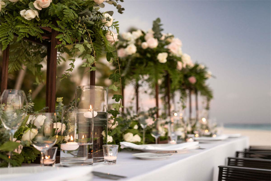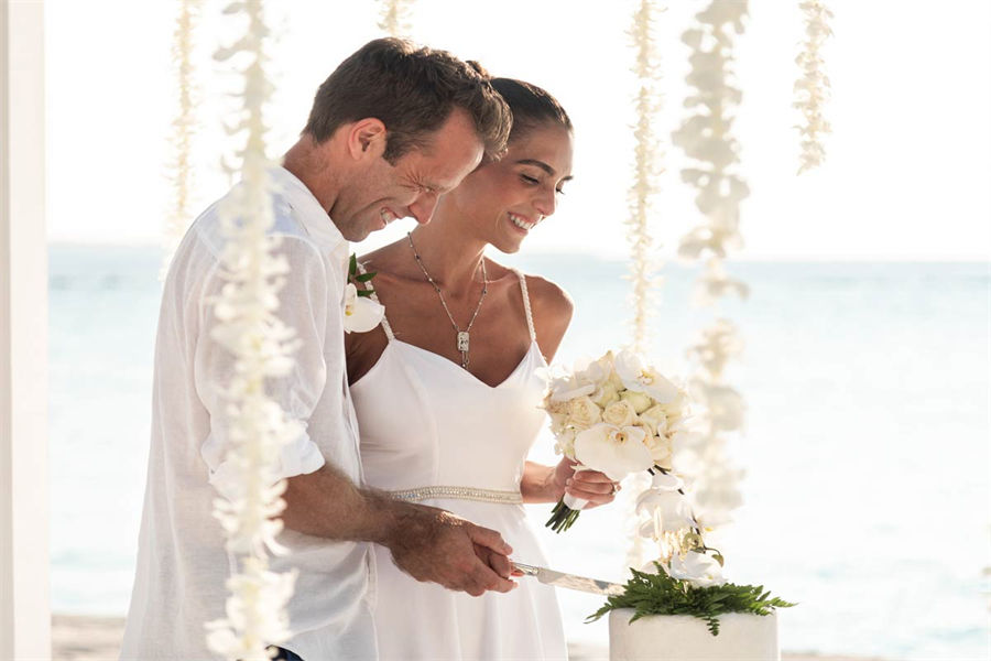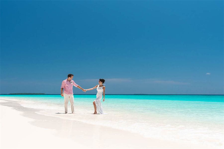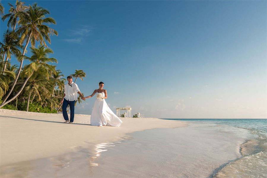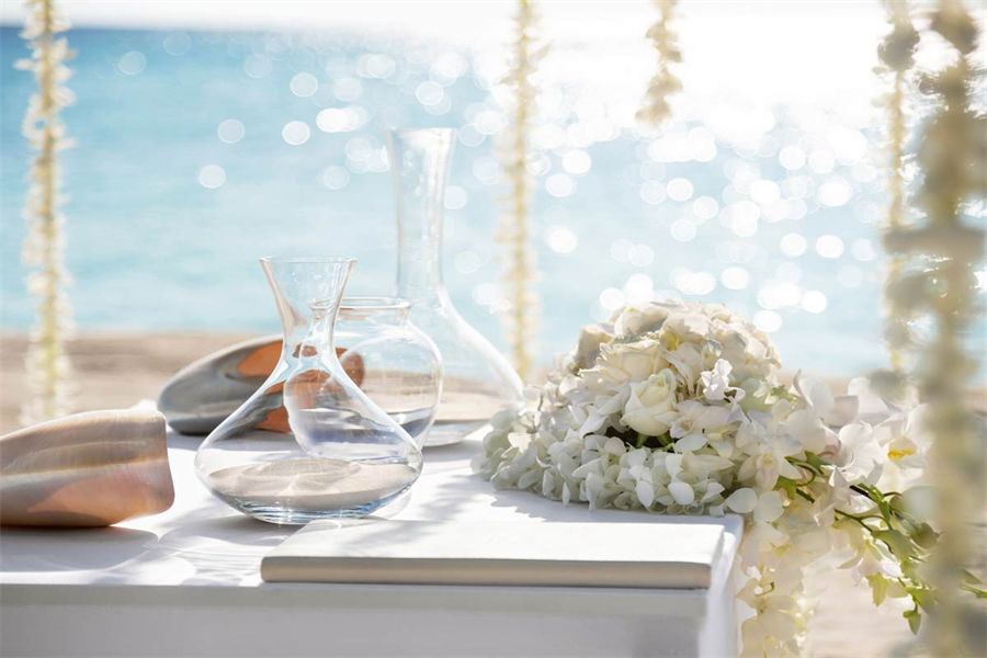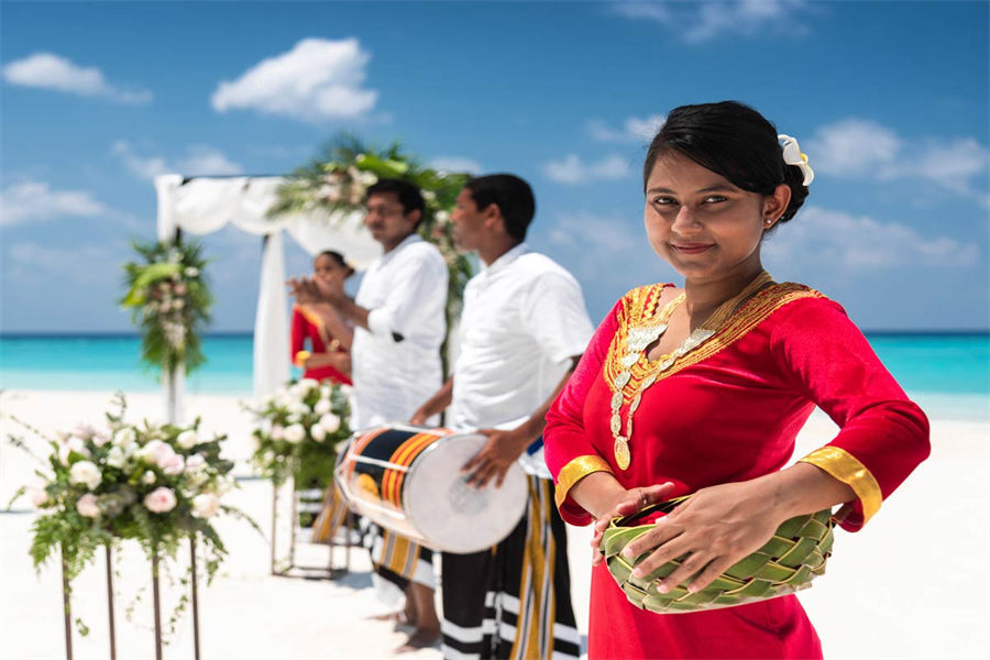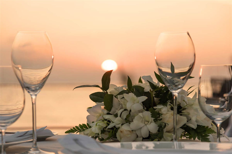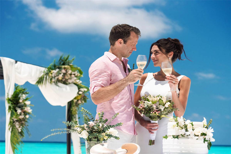 活动简介:面向浩瀚壮美的印度洋,独特的Velaa婚礼专为独特的您而设计。漫步走过白色沙滩上鲜花铺就的走道,新郎新娘在五彩缤纷的撒花中共许爱的誓言。此时,丰盛的婚宴已经准备就绪。在您与宾客们觥筹交错之际,我们的大厨将准备汇聚当地美食的独特烧烤,为你们奉上一段温馨浪漫的休闲时光。精致优雅的鲜花装饰我们会精心布置每一张餐桌,同时安排DJ或乐队演奏完美应景的舞蹈音乐。烟火表演、激光表演或其他私人订制表演将为您的婚礼增添永恒的美好记忆,完美开启您在这座人间天堂的蜜月之旅。