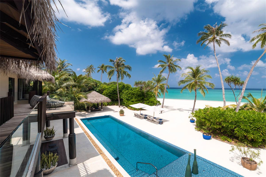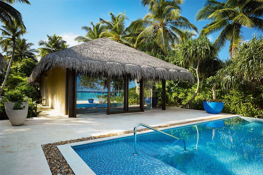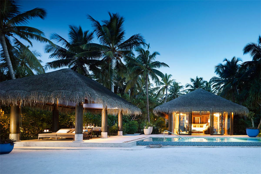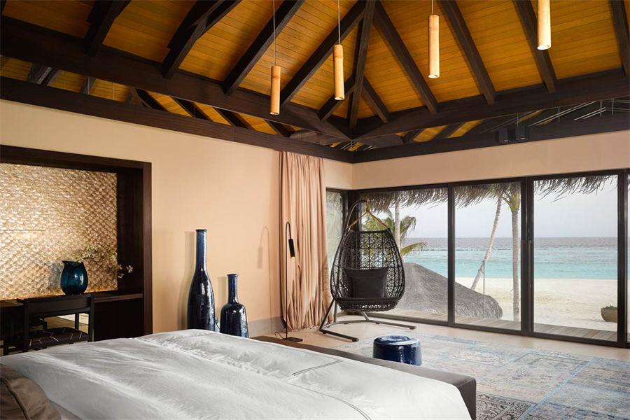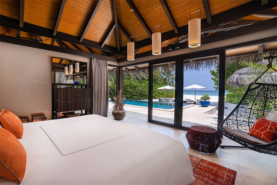 房型介绍:全岛仅9栋的豪华沙滩泳池别墅面积足有313㎡。室内设计采用天然材料与色彩,充满素雅自然之风,悬挂椅平添一丝灵动与趣味。单卧海滩泳池私人别墅配备一间宽敞的独立起居室、室外露台、私人泳池和室内浴室。充满禅宗格调的户外浴室配备超大浴池和甲板,经由中庭花园可来到一处圆柱形礼台,礼台下方设一张舒适躺椅。位于泳池边的露天用餐区是日落时分的最佳休憩之地。