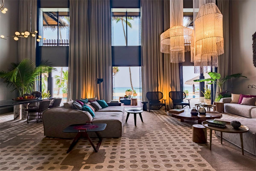 房型介绍:妮卡私人公馆面积1324㎡,最多可容纳10位宾客,坐揽顶级设计师打造的海滩休憩寓所。垂直墙板精选拉菲亚和天然木头等材质,搭配质朴典雅的纺织品,仿若室内外自然交融。设计营造出温馨时尚的氛围,配以手工制作的极简主义家具;璀璨的Craaft枝形吊灯下方设有5米长的宽大餐桌,桌身由两块罕见的黑色大理石板切割而成。