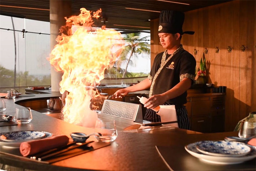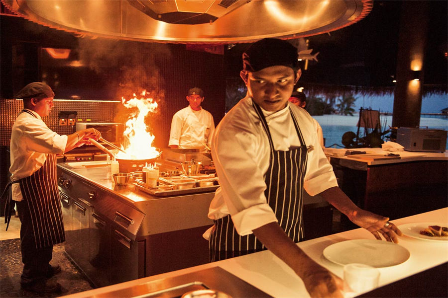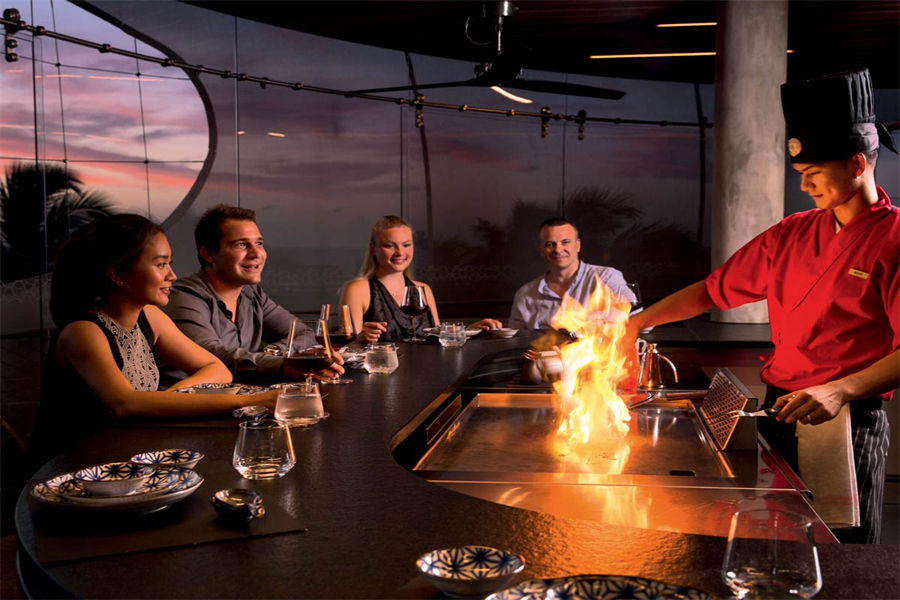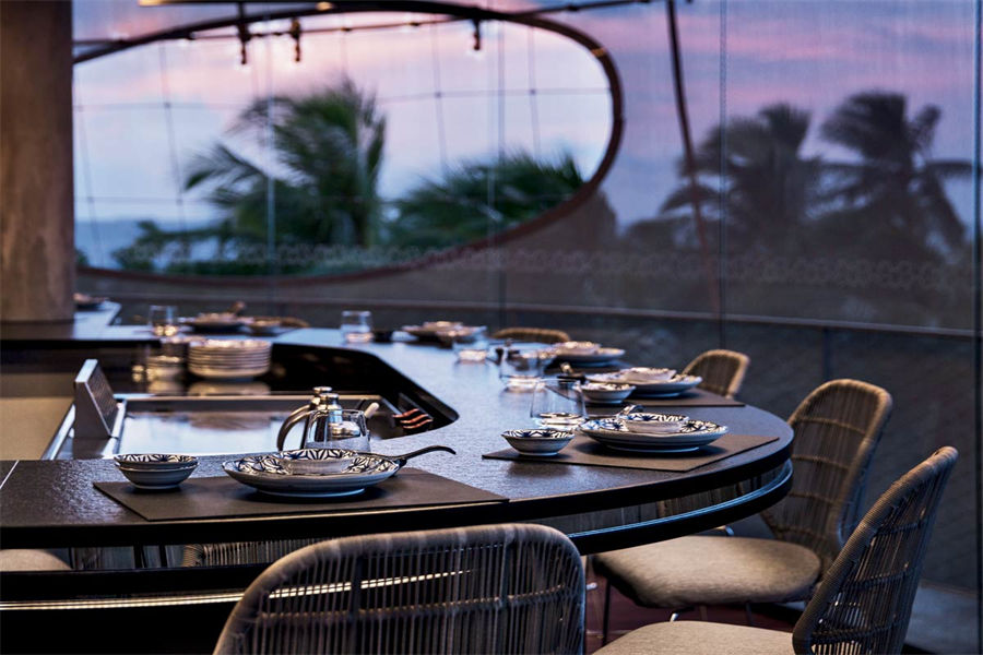 餐厅介绍:Tavaru塔楼餐厅推出全新铁板烧概念,在美食的熏陶下,Velaa私人岛的怡人风景和印度洋的湛蓝海水显得更为迷人。 坐下享用铁板烧晚餐时,抬头就可欣赏到美丽的夜空,满天繁星触手可及。您还可以坐到前排,尽情欣赏技术精湛的主厨娴熟地切片、切丁、调味和京制定制美食,聆听食材在铁烤架上的铁板烤盘中滋滋作响的声音,此时扑鼻的香味将渗透到您身体的每个细胞。