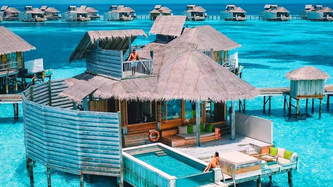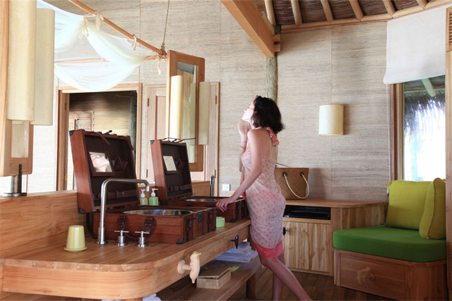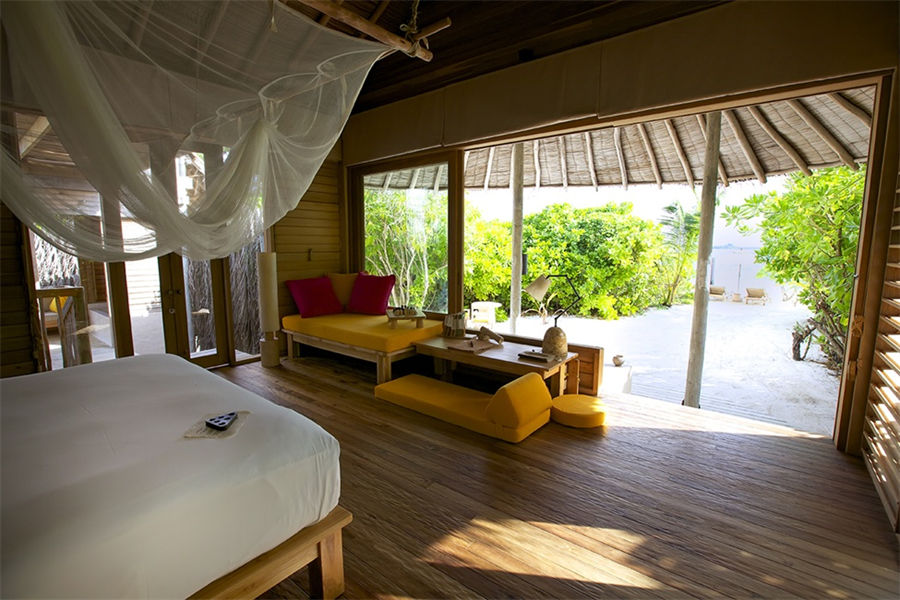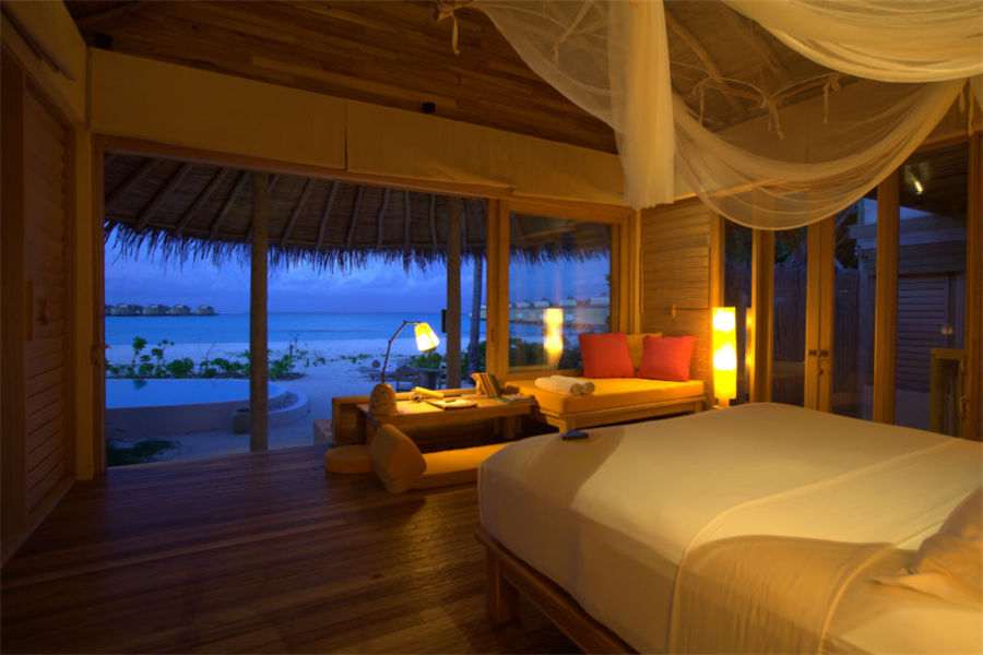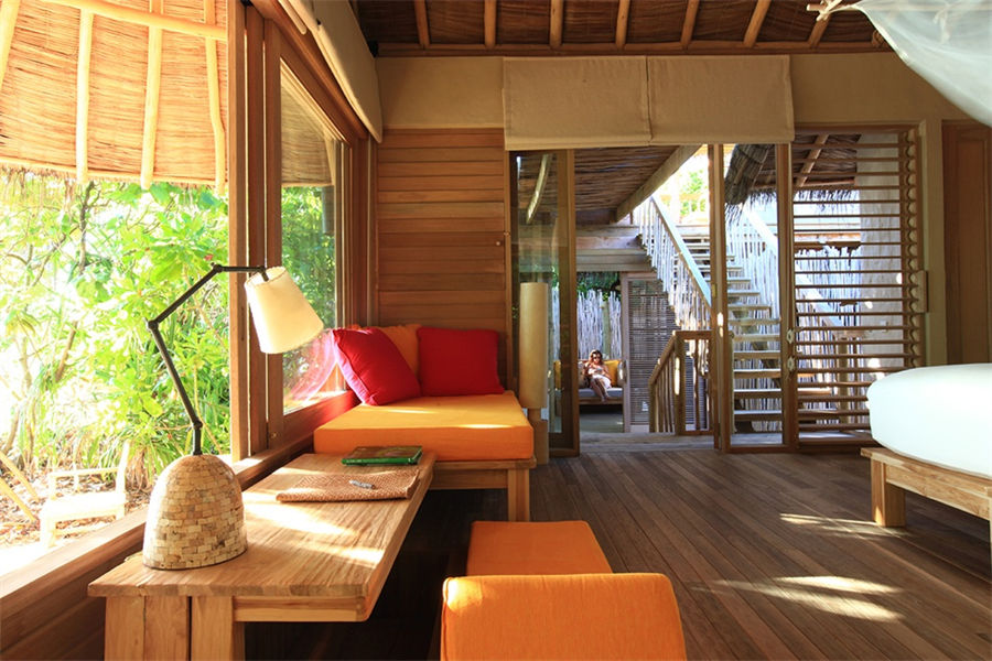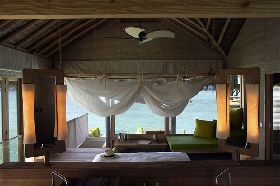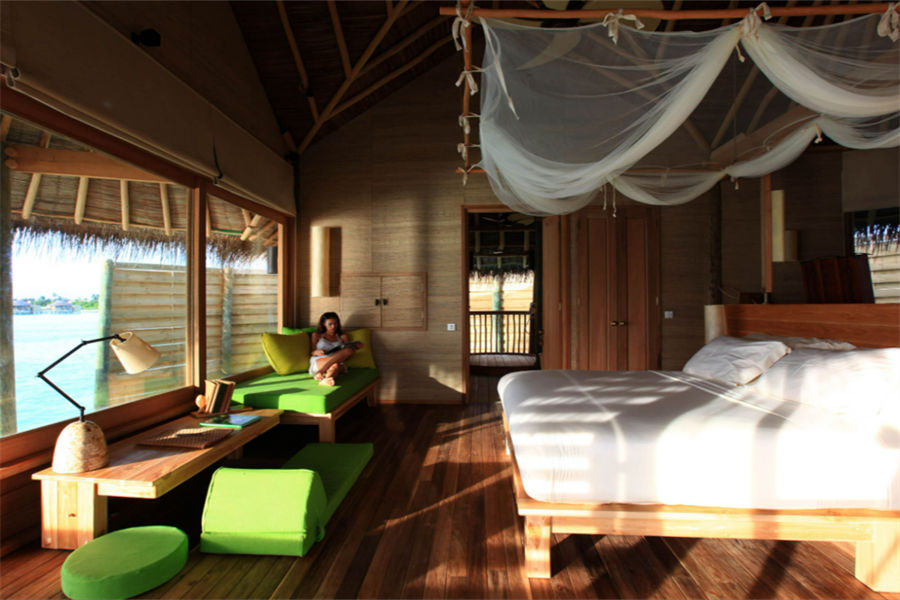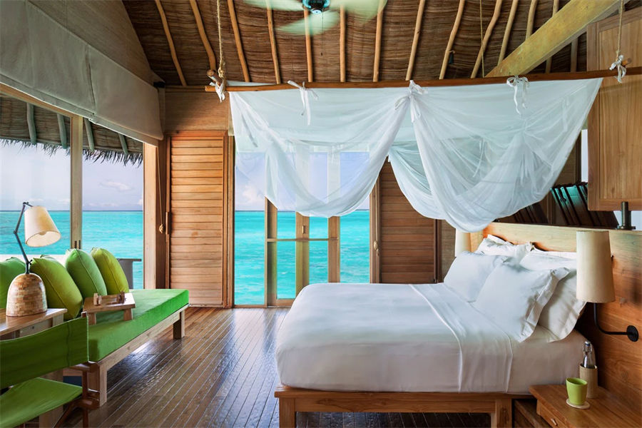 房型介绍:泻湖水上别墅全岛16栋,面积108㎡。坐落在浅浅的泻湖之上,可以直接进入大海,在泻湖周围游泳或浮潜,或在水上渔网吊床上放松。设有一个玻璃水上浴缸,可以看到泻湖和室外淋浴。