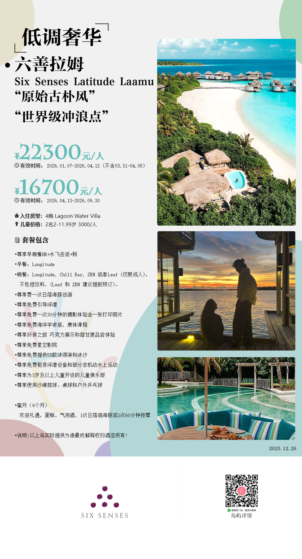 活动简介:拉姆岛六善酒店会为您打造浪漫的美好时刻。协助您布置好婚礼仪式、场地、餐饮和服务,为您打造梦寐以求的婚礼现场。让您充分发挥创意,策划特别的惊喜时刻。当您说出“我愿意”的那一刻,您的任何梦想都能实现。