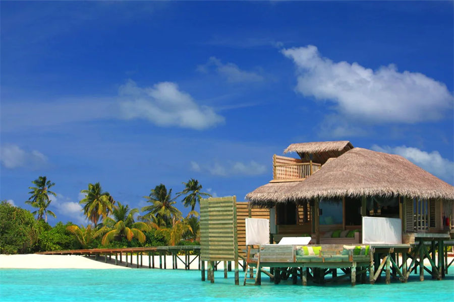 房型介绍:拉姆水上别墅全岛12栋,面积108㎡。位于栈道的尽头,拥有超棒的海景视野。和其他标准水屋的配置基本相同。配备云形床以获得最优的海天景观,床上配备有机棉床单和定制的枕头。在玻璃浴缸和私人水上花园旁的露天淋浴中,沉浸在浩瀚的印度洋之中。