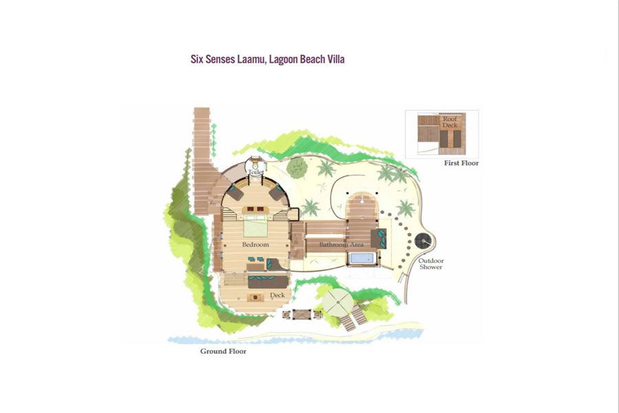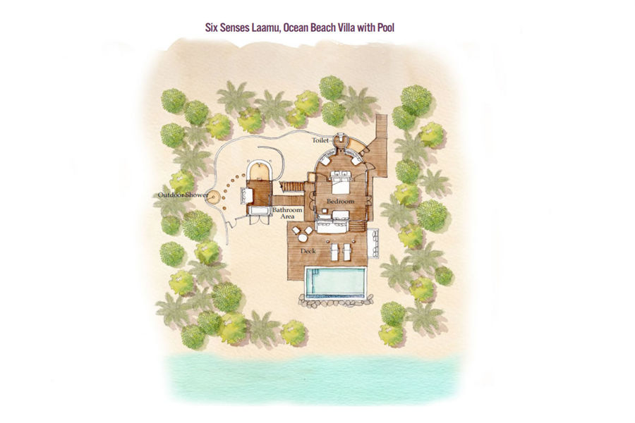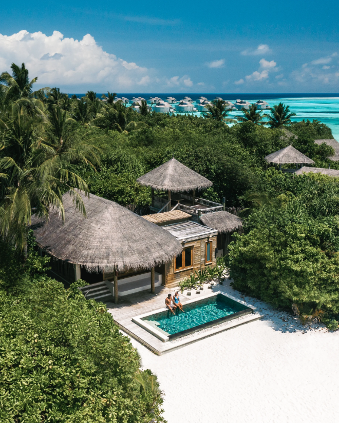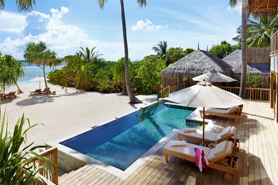 房型介绍:海洋沙滩泳池别墅全岛10栋,面积238㎡,采用环保的原生态材料建造而成,隐匿在茂盛的热带丛林中,面朝岛屿日落侧,可尽览美丽的印度洋。