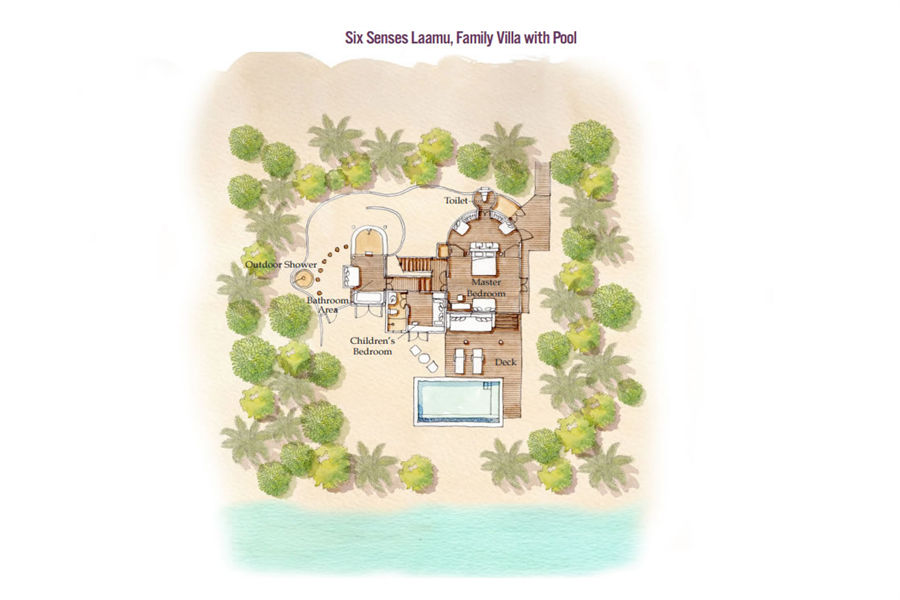 房型介绍:家庭泳池别墅全岛6栋,面积253㎡,隐匿在茂盛的热带丛林中,面朝大海,是亲子度假的理想之选。别墅还附带一个足够两位儿童共同使用的书房和一个连通浴室。这套家庭别墅拥有私人泳池,可通过专属通道前往几米之外的海滩。