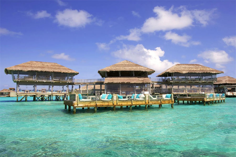 房型介绍:海洋水上别墅全岛16栋,面积108㎡。配置和泻湖水上别墅基本相同,但是位置离岛屿更远。拥有内嵌式海洋观景全玻璃浴缸,私人水上花园,户外休闲平台,水上网床等设施。