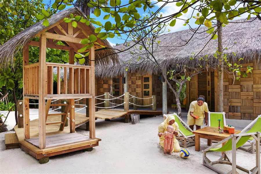 房型介绍:家庭度假胜地坐落在热带植物中,可直接通往海滩,设有私人泳池和可欣赏壮丽海景的树顶甲板。 这些马尔代夫的家庭海滩别墅位于岛屿面向大海的一侧,拥有通往原始海滩的私人通道。这些别墅设有主卧室、儿童房、私人游泳池和花园,将室内舒适与户外探索融为一体。享受树梢海景、露天淋浴和宁静的热带环境,非常适合家庭探险和放松。