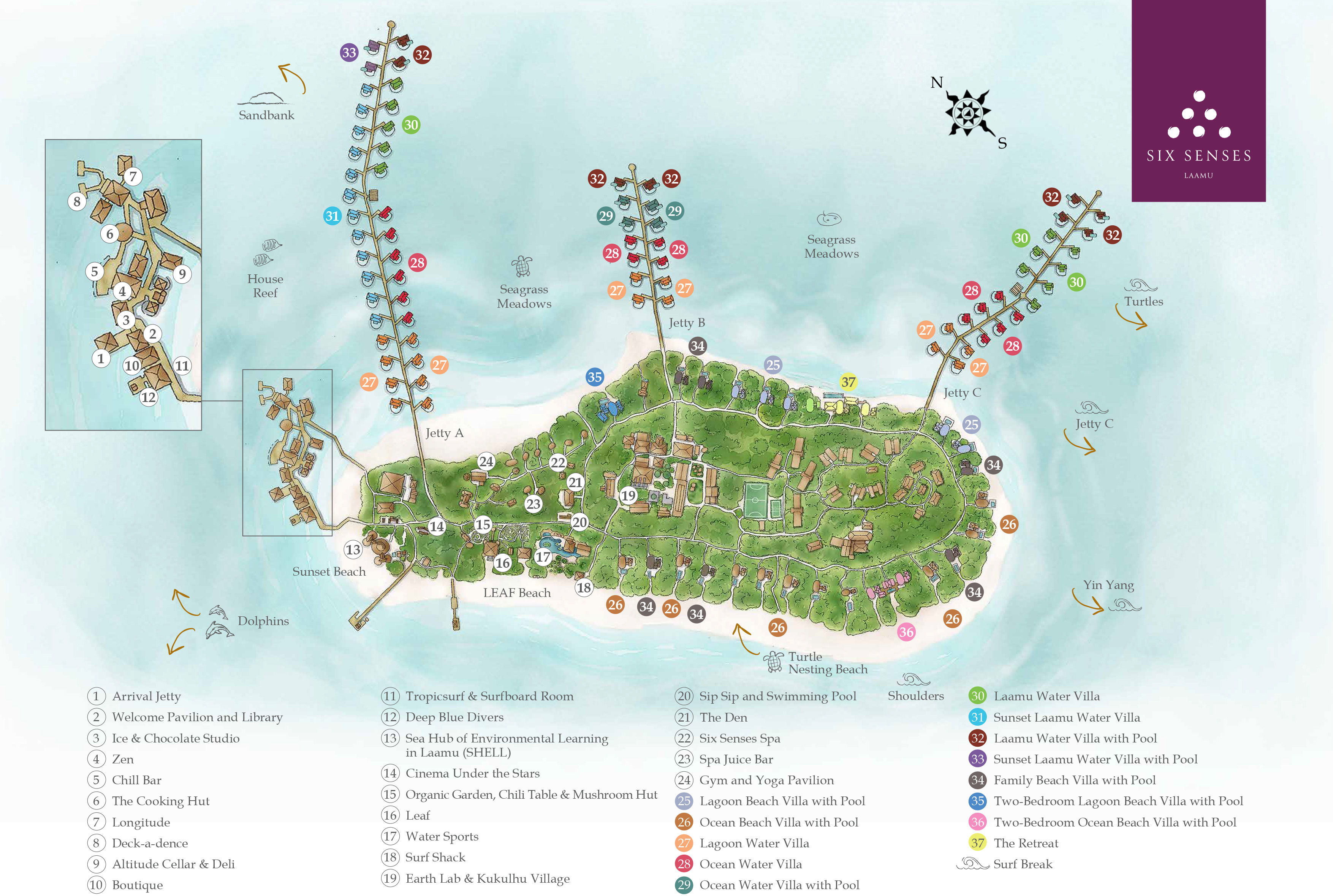马尔代夫六善拉姆Six Senses Latitude Laamu,作为Laamu地区第一个度假村,是深处印度洋的僻静的拉姆环礁上唯一的度假村,岛屿有着独特的自然美景、白色粉末的细沙、繁茂的热带植物和水晶般清澈透明的水质。建在海滩上和礁湖的绿色水面上的拉姆拉堤岛度假村别墅从方方面面展示了自然友好型与奢华型的完美结合。酒吧和餐厅提供品质上乘的有机新鲜食物,本土养殖采摘,源于“热带”灵感调制的鸡尾酒,保存在天然酒窖中的500多种葡萄酒。